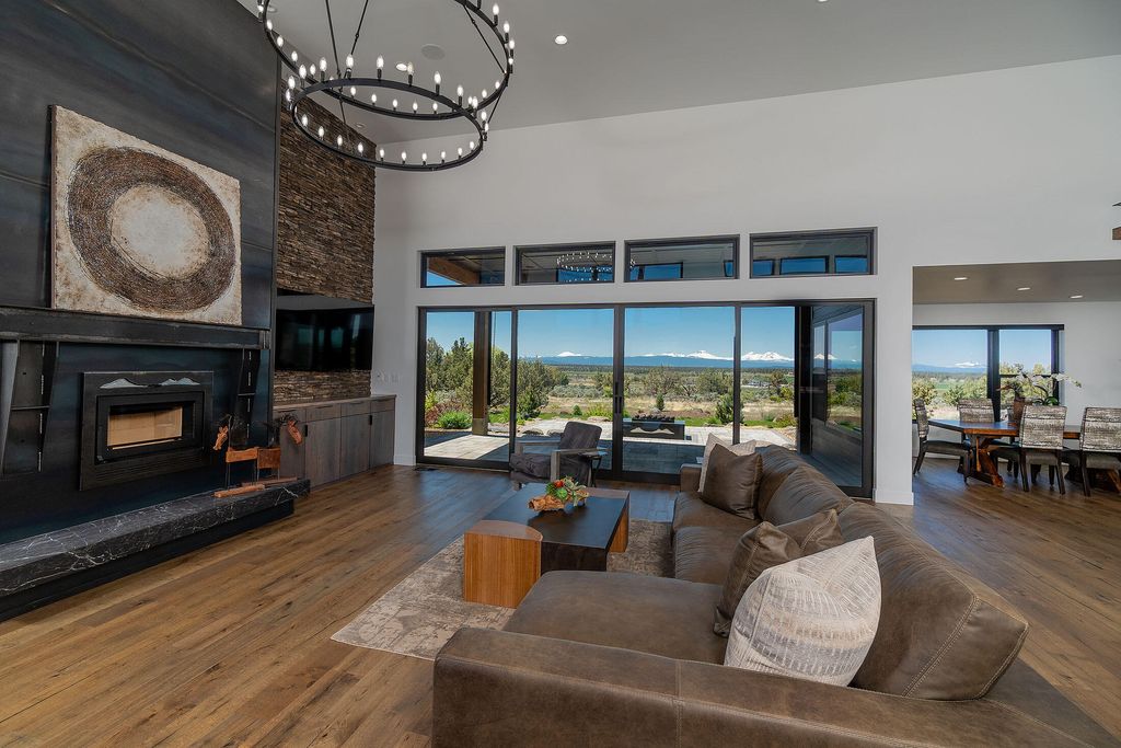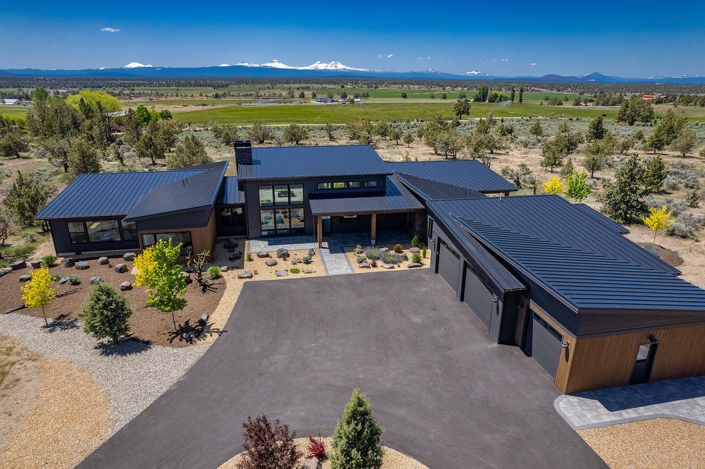 Stunning Grandview Estate in Powell Butte, Nestled on 9.67 Acres with Breathtaking Mountain Views. Meander through the Custom Gated Driveway to the Sprawling Single Level Mountain Modern with Contemporary Style and Picturesque Windows. Spacious Great Room with 16ft ceilings, Custom Iron Wood Burning Fireplace, Amazing Slider to the Covered Back Patio with Custom Fire Pit and the Sparkling Water Feature, Privacy and Views. Kitchen boasts large Quartz/Stone Island with Underlighting, Jen Air Appliances, Butler Pantry with Floating Shelves. Luxury Primary Suite features Stone Wall with lighting, Private Covered Patio with Hot tub, Elegant Primary Bath with Porcelain Heated Floors and Shower, Custom Walk-In Closet. Bonus Room with Wet Bar, along with Two Guest Suites. Attached Three Car garage with Safe Room, Detached RV Garage with potential for an ADU - 732 SF Flex space with bathroom and laundry. Come Tour this Home Today!