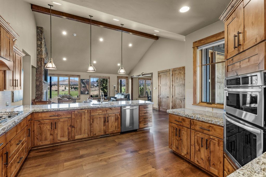 Welcome to your pristine dream home at Brasada Ranch! As you walk in the front door you will be greeted by stunning views of Outback Butte, Spirit Rock, and open pastures, this home blends luxury with the natural beauty of Central Oregon. The open-concept great room features vaulted ceilings, exposed wood beams, a stone fireplace, and hardwood floors throughout. The chef's kitchen boasts slab granite countertops and knotty alder cabinetry. A standout dining room offers coffered ceilings with rich wood beams"”perfect for entertaining in style. Enjoy mostly single-level living with two spacious primary suites, an additional bedroom and full bath on the main level, plus a spacious upstairs bonus room with half bath. A perfect blend of comfort, style, and serene ranch living.