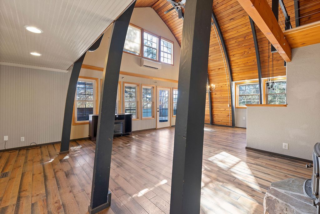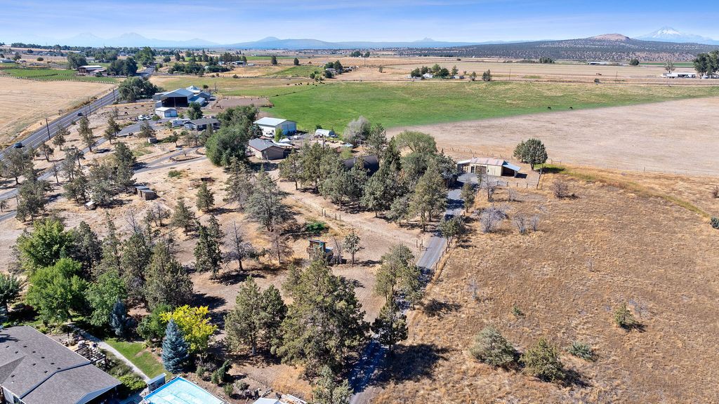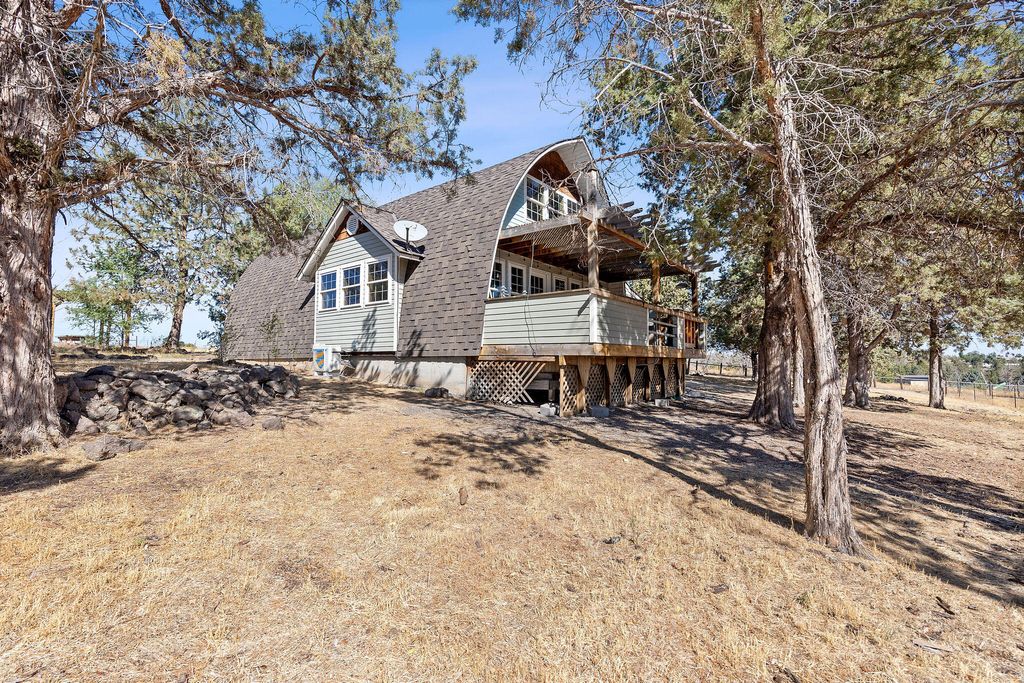 Not the atypical home in a neighborhood, this beautiful A-Frame house on two acres with three bedrooms and two baths is ready to be your new home. The T&G woodwork inside is a must see. Kitchen shines with a white farmhouse sink and white quartz countertops. The cable railing system on the banister adds a sleek contemporary aesthetic. Make the outside your personal oasis with multipurpose outbuildings, large garden space, 0.4 acres water rights and room to customize all. Views of Mt Jefferson can be seen from the outside fire pit. Schedule your showing today.