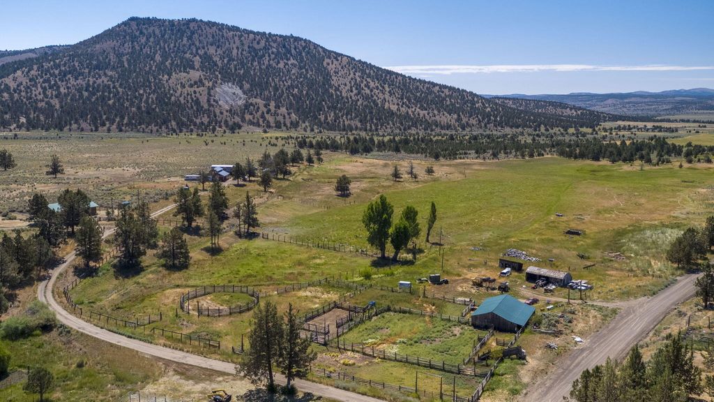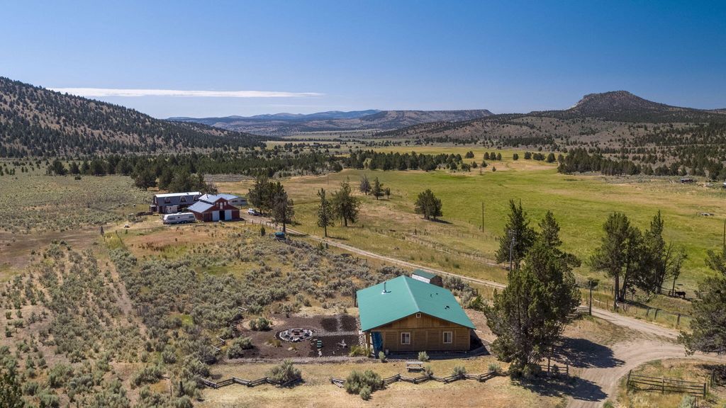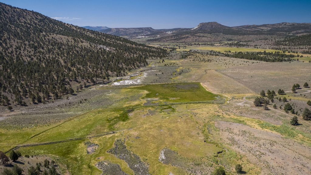 Beautiful cattle ranch located at the base of the Maury Mountains with green lush meadows, creeks, springs, reservoirs, high desert landscape, and ponderosa pine trees. This historic 3,418 deeded ac. ranch is a spectacular display of where high desert meets the mountains. A traditional cattle ranch with the capacity to run 250 pair. Multiple homes are placed across the ranch with just enough space for privacy. The main home is a 4 bed, 2 bth log structure that has been used as a lodge for guests as an additional form of revenue. 65.5 ac of irrigation rights. The property has 10 total tax lots, 9 of which are included in this listing. An additional 160 ac can be purchased separately. The ranch has a private grazing allotment of approximately 6,332 ac of incredible feed. Fly your personal plane to the ranch and land on a registered FAA airstrip located on the property. The ranch boarders both NF and BLM. There are 2 registered fossil beds on the deeded ground. Great mule deer hunting.