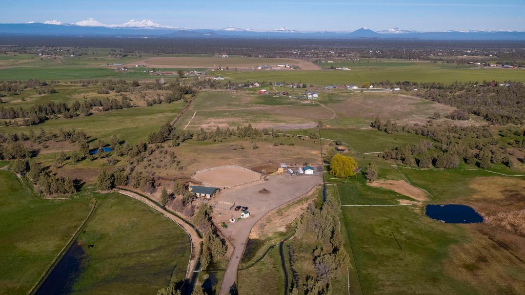 This well designed horse property is surrounded by beautiful green irrigated pastures and has spectacular views of the Cascade Mountains. Maintained and well cared for this property is a turnkey operation whether you are in the horse training business or a horse enthusiast looking to live in the highly sought after Powell Butte community. The home is very charming, cute and cozy. The 7 stall barn is super inviting, well placed, and rigidly constructed. It also has an immaculate and organized tack room. The arena is 145' by 145' with excellent well drained footing. The fencing is predominantly oil field posts and rail with high gage cable cross wires. The cattle infrastructure includes: heavy duty loading chute built to handle cattle trucks and a stout corral area with a heavy-duty lead up tub. Other horse amenities include: round pin and a hot walker. Upgrades to the house include: heated fl. in the bath, ductless heat and ac, remodeled bathroom and kitchen, and a propane heat stove.