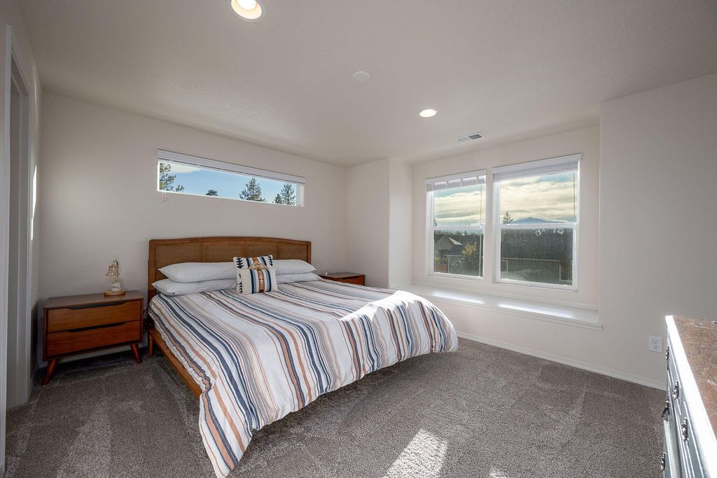 Beautifully maintained newer home on a desirable corner lot in Sisters. This 3-bedroom plus office, 2.5-bath property offers style, comfort, and function. The open layout features engineered hardwood floors, quartz counters, and painted heartwood cabinets, along with abundant storage. Upstairs, the primary suite impresses with two closets, including a walk-in, and absolutely stunning mountain views. Laundry is conveniently located near the bedrooms, making daily chores a breeze. All appliances are included for a true move-in-ready experience. A short stroll takes you to the nearly 2-acre community park, and Sisters' high, middle, and elementary schools are all close by. With a two-car garage, smart design, and thoughtful finishes, this home is ready to enjoy both inside and out.