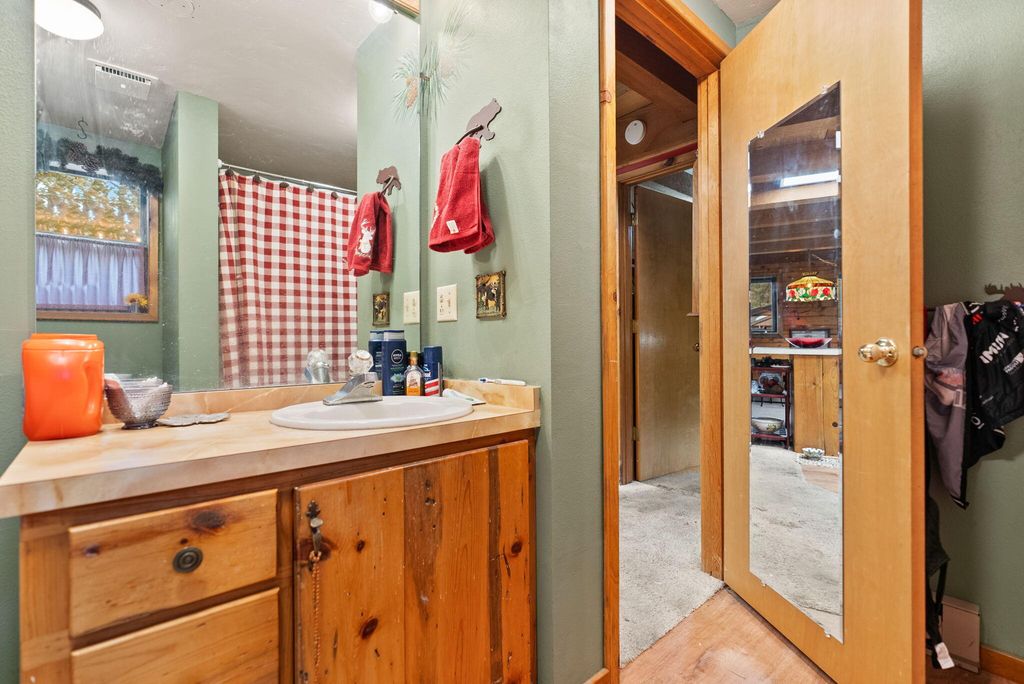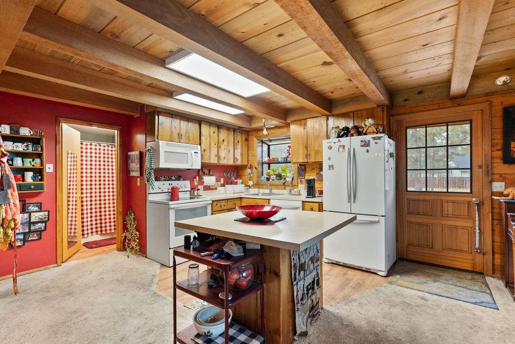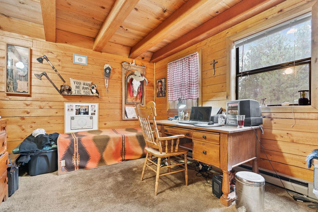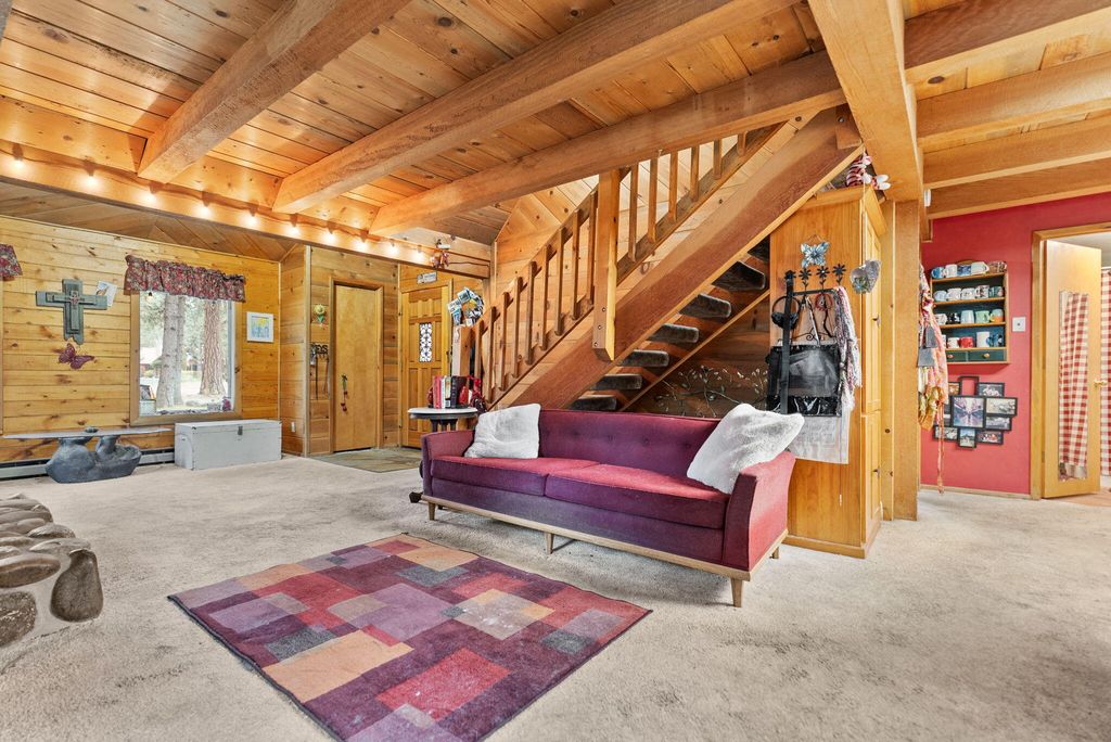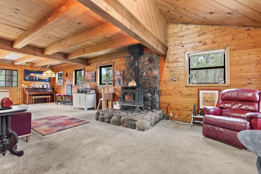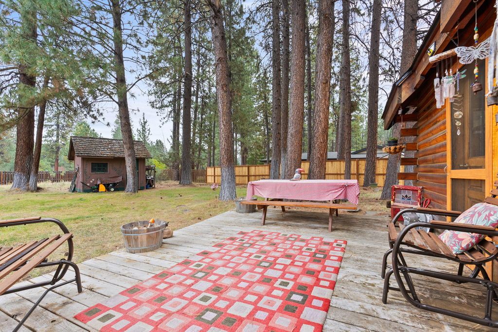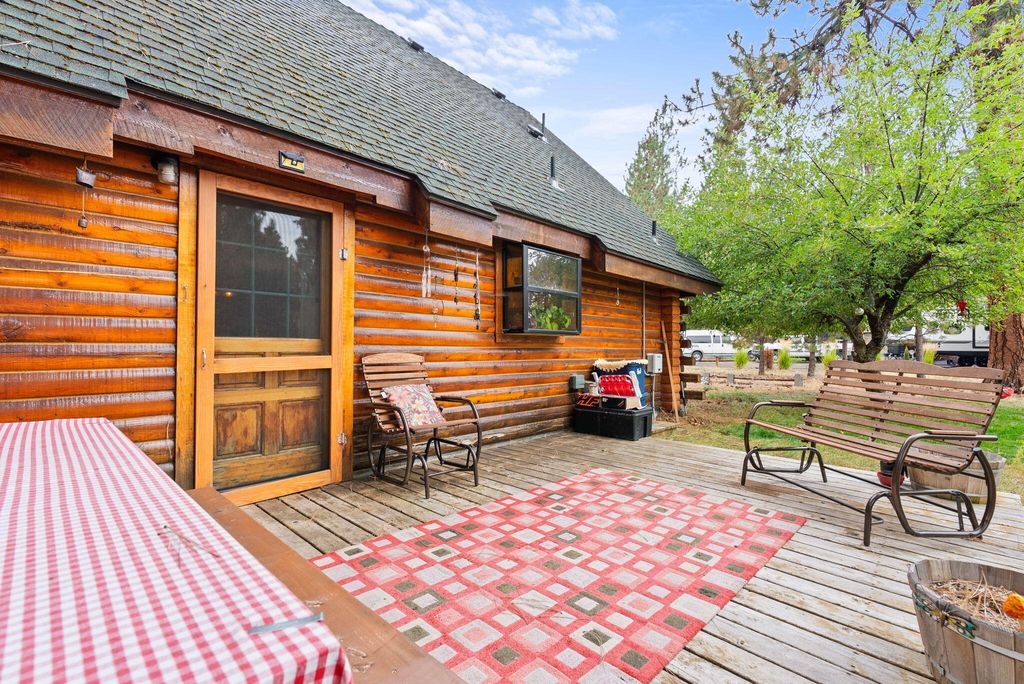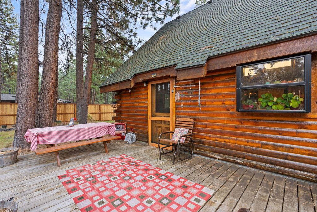 Welcome to your genuine log home, where rustic charm meets modern comfort. As you enter, the inviting river-rock hearth and the warmth of the wood stove greet you, creating a cozy atmosphere. Relax in your comfortable chair and admire the tongue and groove wood-beamed ceiling that adds character to the entire home. Unwind on the expansive cedar deck as you enjoy the lush, irrigated lawn and mature Ponderosa Pines. This two-story residence spans 1,592 square feet and features three bedrooms and two bathrooms, offering ample space on its 0.54-acre lot. The generous property provides plenty of room to build a garage or shop. Nestled in the highly desirable Tollgate community, this location is surrounded by public lands and conveniently positioned just 2 miles west of Sisters via Highway 20. Tollgate's amenities, including a paved bike and walking trail, swift access to public lands, a swimming pool, club house, tennis & pickleball basketball court, and a park. A must see home!