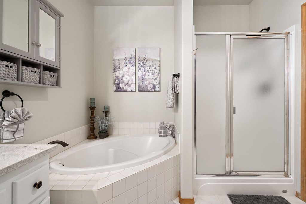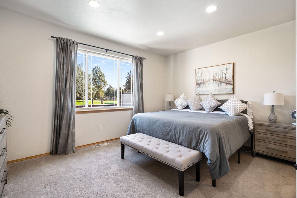 Experience resort-style living at its finest at Eagle Crest! This stunning 4 bedroom, 3.5 bath townhome offers an unparalleled close proximity to the resort's amenities. Uniquely showcasing two primary bedrooms fitted with luxurious showers and soaker tubs, it makes for an ideal home or short-term rental. Set on the picturesque green of the Eagle Ridge Challenge Course's 1st hole, this spacious property extends charming features like barnwood accent walls installed by expert craftsmen, water and scratch-proof vinyl plank flooring, and a newly updated deck complete with a newer model hot tub. The recent addition of a new roof and an electric charger for vehicles enhances the value of this home. Modern home systems like a new recirculating water heater and newer washer and dryer have been fitted for your comfort. The great room, spotlighting open shelves, a wet bar, and a beverage refrigerator, awaits your cheerful celebrations and guest visits. Buyer due diligence on short term rental.