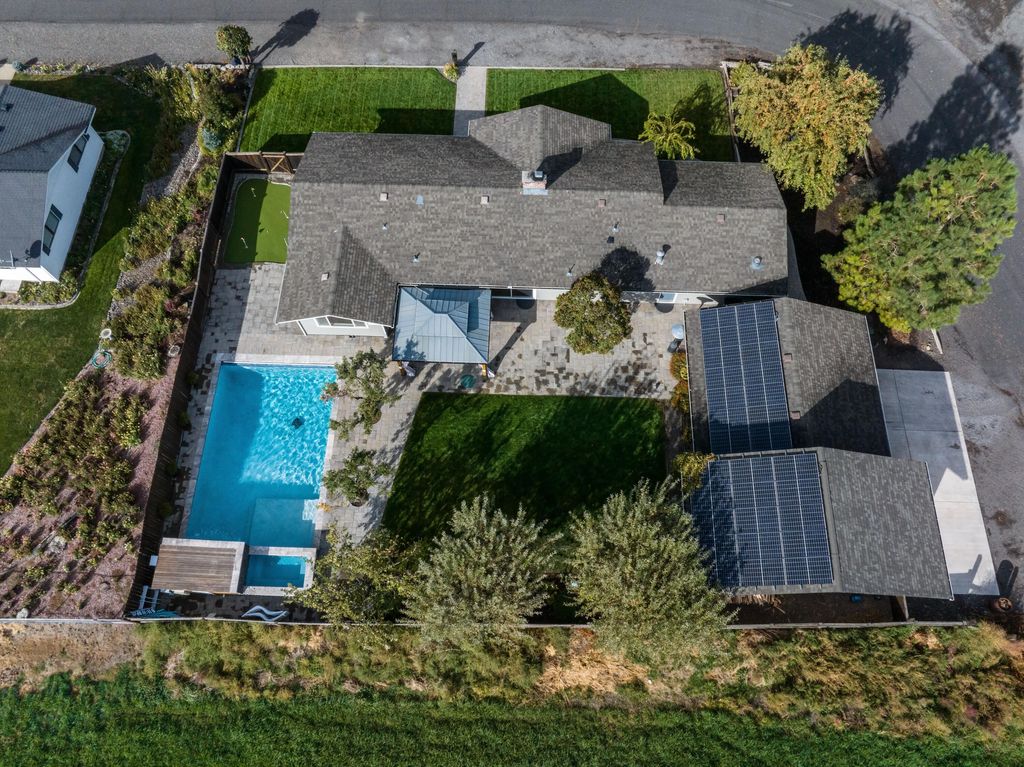 Stunning single level country home near Prineville Golf Club, featuring a saltwater pool and spa. Fully remodeled, this 2,136 sq ft home features 4 bedrooms, 3 bathrooms, and a cozy living room with a stone wood-burning stove. The chef's kitchen shines with a breakfast bar/island, solid surface countertops, pantry, and adjacent dining area with patio access. The primary suite offers a tiled shower, built in cabinets and walk-in closet. Enjoy a beautifully landscaped, private backyard with a pool with swim jet, spa, gazebo, patio, mature fruit trees, and scenic views of farmland and valley rimrock. Includes a 3 car garage with an RV bay and a 10 KW grid-connected solar system (owned). Nestled in a peaceful neighborhood on Prineville's east side, close to the semi-private 9-hole Prineville Golf and Country Club with a dual tee system, and just minutes from town, the Ochoco Mountains, and Ochoco Reservoir.