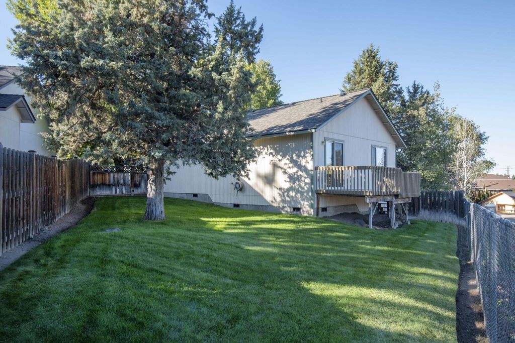 Well-maintained home nestled on a cul-de-sac. Convenient to downtown, the Bend Parkway, the hospital, Hollinshead Park, shopping areas, restaurants. Attractive floor plan, with vaulted ceiling, tile entryway, and an abundance of natural light. The perfect blend of functionality and warmth. The primary suite offers a walk-in closet, vanity with tile backsplash & private shower. An efficient kitchen with pantry includes all appliances, updated flooring, and ample counter space. The dining area has sliding glass doors leading to an elevated 8' x 16' back deck overlooking the manicured lawn and surrounding terrain. Fully fenced and gated yard, with mature trees and underground sprinklers. The large lot may lend itself to an accessory dwelling unit (ADU), which could generate additional income in the future. Updates include a new roof in (2023), water heater (2021) and furnace (2018). Don't miss this one!