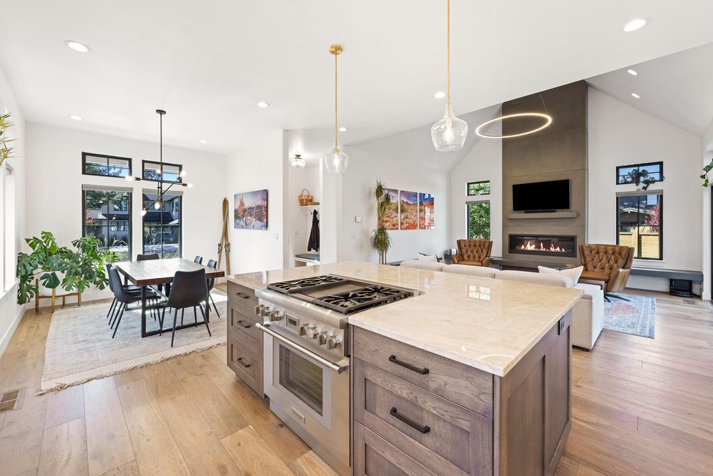 This stunning 3-bedroom, 2.5-bath modern farmhouse situated on a corner lot offers an open floor plan with main-floor office, the ideal work space. Custom lighting is featured throughout the home, highlighting the large kitchen island with bar seating"”perfect for casual meals or entertaining guests. The kitchen is equipped with premium Thermador appliances, including a separate ''snack'' refrigerator for added convenience. The primary suite is located downstairs & boasts vaulted ceilings with custom wood beams, providing a luxurious retreat. Upstairs two bedrooms & a full bath offer the ideal separation of space. Step outside to the private courtyard, where you'll find a custom firepit, a sunken hot tub, & a grassy area ideal for relaxation or gatherings. The oversized two-car garage has plenty of room for storage & toys. Located in the coveted Discovery West neighborhood, close to schools, trails, & shopping, making it a perfect blend of comfort, style, & convenience.