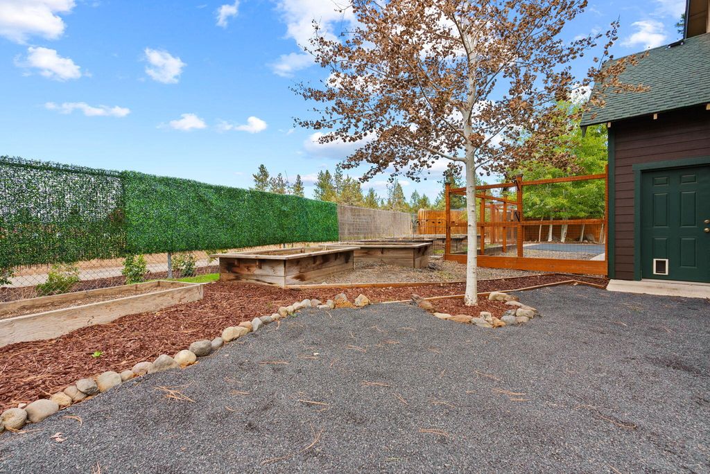MOVE-IN READY! 1,635 SF, Great Room, 3-bed, 2.5-bath plus loft on an oversized 0.32-acre lot in Sisters, Oregon! Next to Sisters' newest park, featuring pickleball courts, sports fields, gazebo/picnic area, and Sisters Park and Recreation headquarters. A 1-minute stroll to the nature trail following Whychus Creek, and only 30 feet to the pedestrian path leading to Downtown Sisters. Turnkey quality! Great room with propane fireplace, dining area, and kitchen with an island and breakfast bar, custom cherry soft-close cabinets, and granite countertops. Parking for your 45-foot RV. The fenced backyard is perfect for outdoor living and hobbies, featuring a 180 SF garden shed or future playhouse, a separate greenhouse, raised garden beds with a drip system, mature landscaping, and a covered patio with a cozy fire pit. The oversized 2-car garage, complete with storage shelving and a driveway, offers incredible utility. 2.5 miles to Sisters Elementary, Middle, and High Schools!