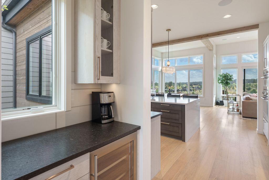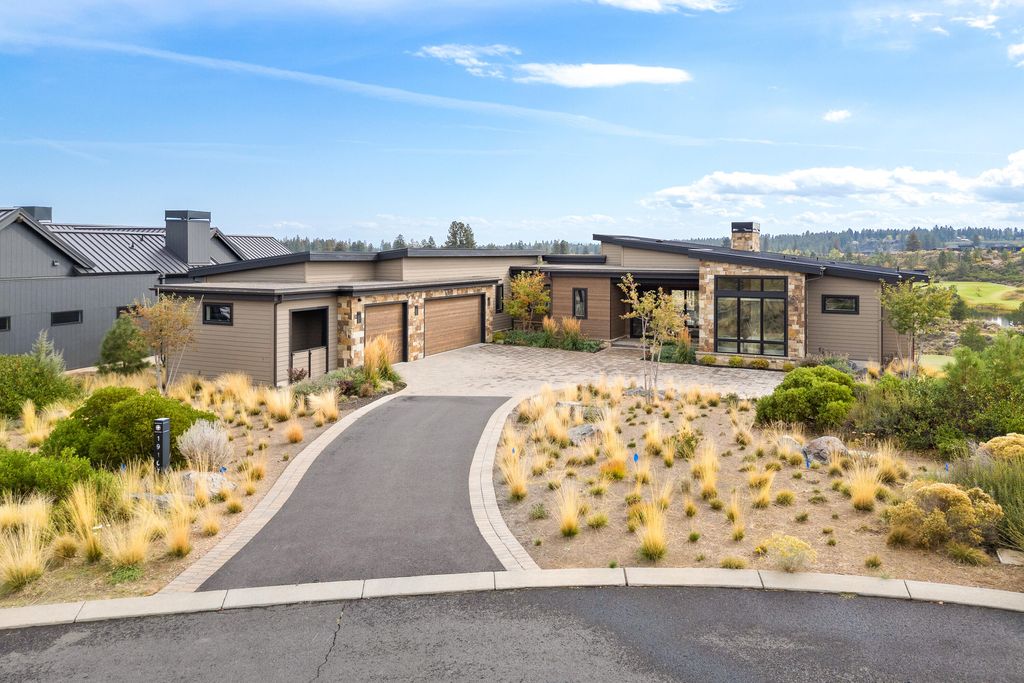Located at the end of the cul-de-sac of the well sought after neighborhood, Tartan Druim & overlooking Tetherow's prestigious Kidd's Corner is where you will find this elegant custom home. This impressive, light-filled home captures the vast views from top to bottom. Graced w/high end finishes & fun touches, you'll find all the bells & whistles throughout this thoughtfully designed home. On the main level you'll find an airy primary suite w/a dual vanity, heated floors, & a roomy walk in closet, an open great room w/a striking wood burning fireplace, an entertainers kitchen w/top of the line appliances incl. a beverage fridge & built in coffee maker, a secondary en-suite, office, powder room, mud/laundry room, 3 car garage w/storage room, 2 balconies, & a built-in BBQ. The lower level features a bonus room w/a kitchenette, 2 bedrooms & bathrooms, a paver patio & grass area. Whether living here full time or part time, you'll rest easy w/the Lutron smart system. Why live anywhere else?
