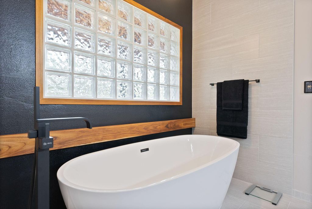 The main level primary bedroom suite offers a freestanding soaking tub, tiled shower, and heated floors. Additional main level accommodations include a guest bedroom, full guest bathroom, and convenient utility room.