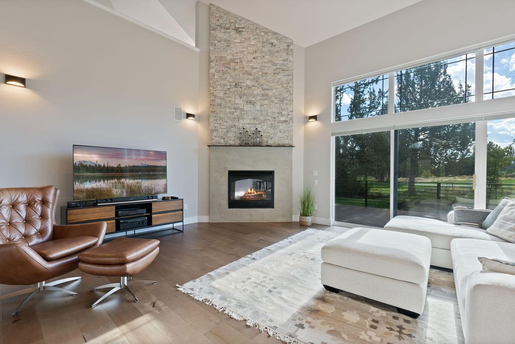 Completely updated custom home positioned along the second fairway of The Ridge Course at Eagle Crest Resort with easterly vistas of Smith Rock and Gray Butte from the upper level. This thoughtfully renovated residence seamlessly blends timeless luxury finishes with cozy mountain modern aesthetics.