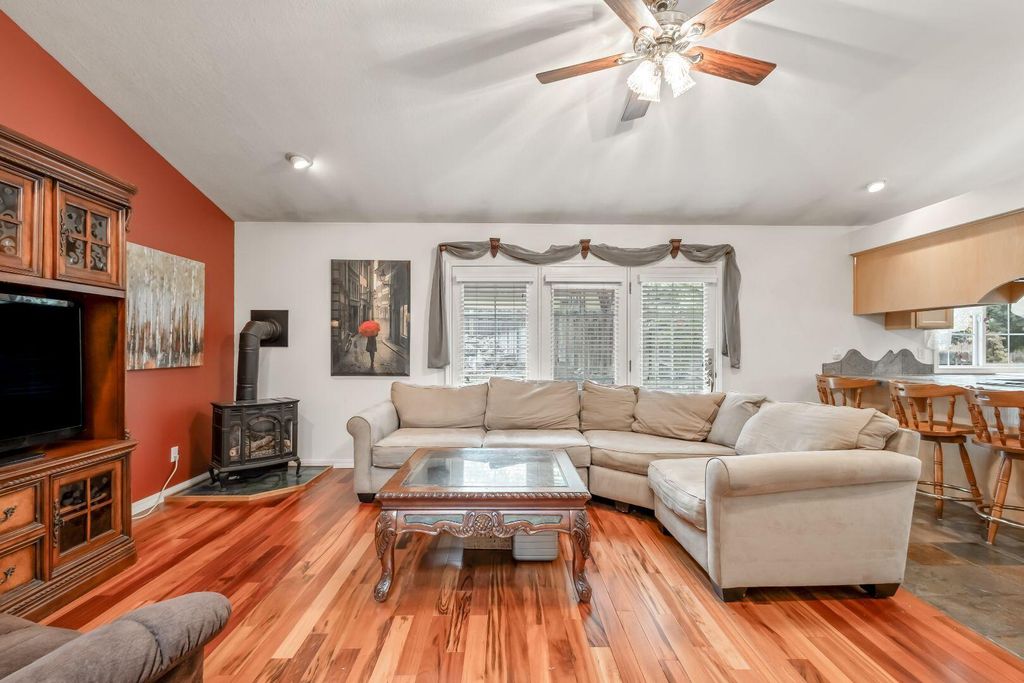 Welcome home to this beautiful 3 bedroom, 2 bathroom gem, perfectly situated on a desirable corner lot. Step inside and be greeted by the warm glow of stunning tiger hardwood floors that flow throughout the main living space. The airy feel is enhanced by elegant vaulted ceilings, creating a spacious and light-filled atmosphere. Gather around the cozy gas fireplace in the living room for effortless warmth on a cool evening. The large, private back deck is ready for everything from your morning coffee to evening entertaining. Plus, a convenient backyard storage shed provides ample space for tools, hobbies, or seasonal items. With a sought-after layout and location, this house is ready to be your perfect sanctuary.