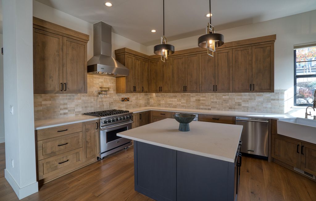 Refined, handcrafted, and nearly new with fabulous views of the Cascade Mountains. This Shevlin West home is adorned with gorgeous light fixtures, built-in cabinetry, Viking appliances, and premium finishes like solid wood 8' doors, wide plank engineered wood flooring, built-in BBQ, and an exceptional window package. In addition to the great room the main level also holds a stylish powder room, laundry room with built-ins, & polished master suite with radiant bathroom floors and curated tile & fixtures. From this elevated setting you can see the alpenglow off the Cascades and watch weather roll-in and over the mountain range. The covered side and back porch are oriented to take advantage of the warm, SW exposure and there's room for everyone in the fenced backyard. Unbeatable location with Shevlin Park and numerous trails right out your back door including the new Manzanita Park across the street. Driveway is heated. Built by local craftsman, Malace Homes.