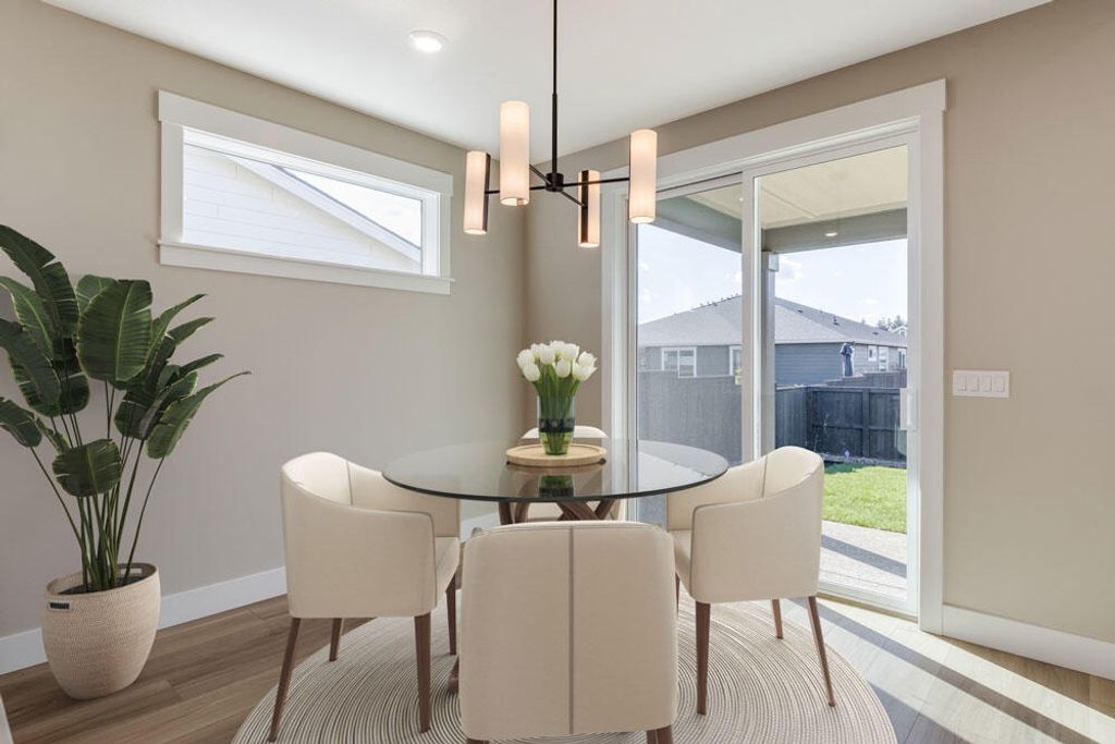 Beautiful new single-level Tahoma plan by award winning Pahlisch Homes! Beautiful upgrades have been added. Personalize the interior colors if purchase before November 11th! You will appreciate the layout with a separated primary suite, two spacious guest rooms, & small den/office. Large, open inviting greatroom with kitchen entertainment island, spacious living area, a gas fireplace and dining area poised to overlook the covered east-facing patio, enjoy afternoon shade in the very private rear yard Quality features include LVP plank flooring, carpeted bedrooms, baths w/porcelain undermounted sinks, solid Alder cabinets, quartz countertops, A/C, fencing, 2-car garage w/opener. Resort style amenities include HOA front yard landscaping maintenance, parks, play area, ½ sports court, seasonal pool, walking path by protected wetland reserve & to 600+ acres of trails. Model home located at @1311 NE Whistle Way, open for tours on Fri, Sat, Sun, & Mon, 11-5:00 pm. Ref#234 Tahoma F.