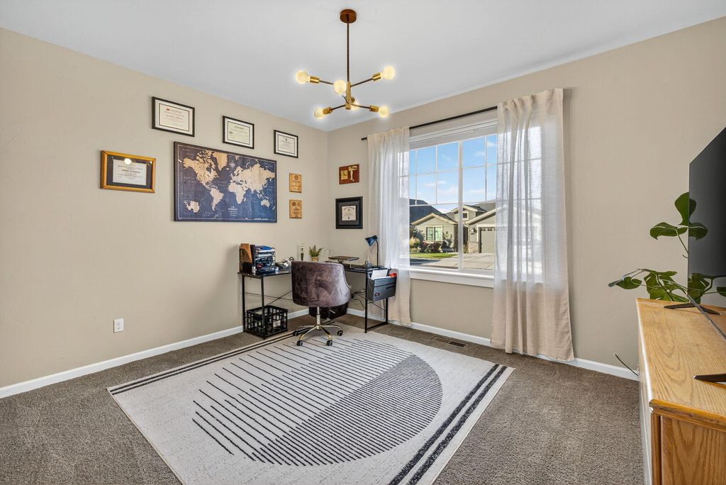 Seller is motivated! Energy efficient home equipped with solar panels. This beautiful single-level Pahlisch home in Ochoco Pointe is ready for you! The home is 1,765 sq ft with 3 bedrooms, 2 bathrooms, and a 440 sq ft two-car garage. Stay warm and cozy with natural gas fireplace and central air heating and cooling system. Kitchen features a large kitchen island, pantry, quartz counters, stainless steel appliances, and knotty alder cabinets. The Solar PV system is owned. The backyard is ready for entertaining with a covered back patio and beautiful xeriscaped landscaping, with turf in the backyard. Ochoco Point community offers access to a neighborhood swimming pool, park, and basketball court. The HOA takes care of the front yard landscaping.
