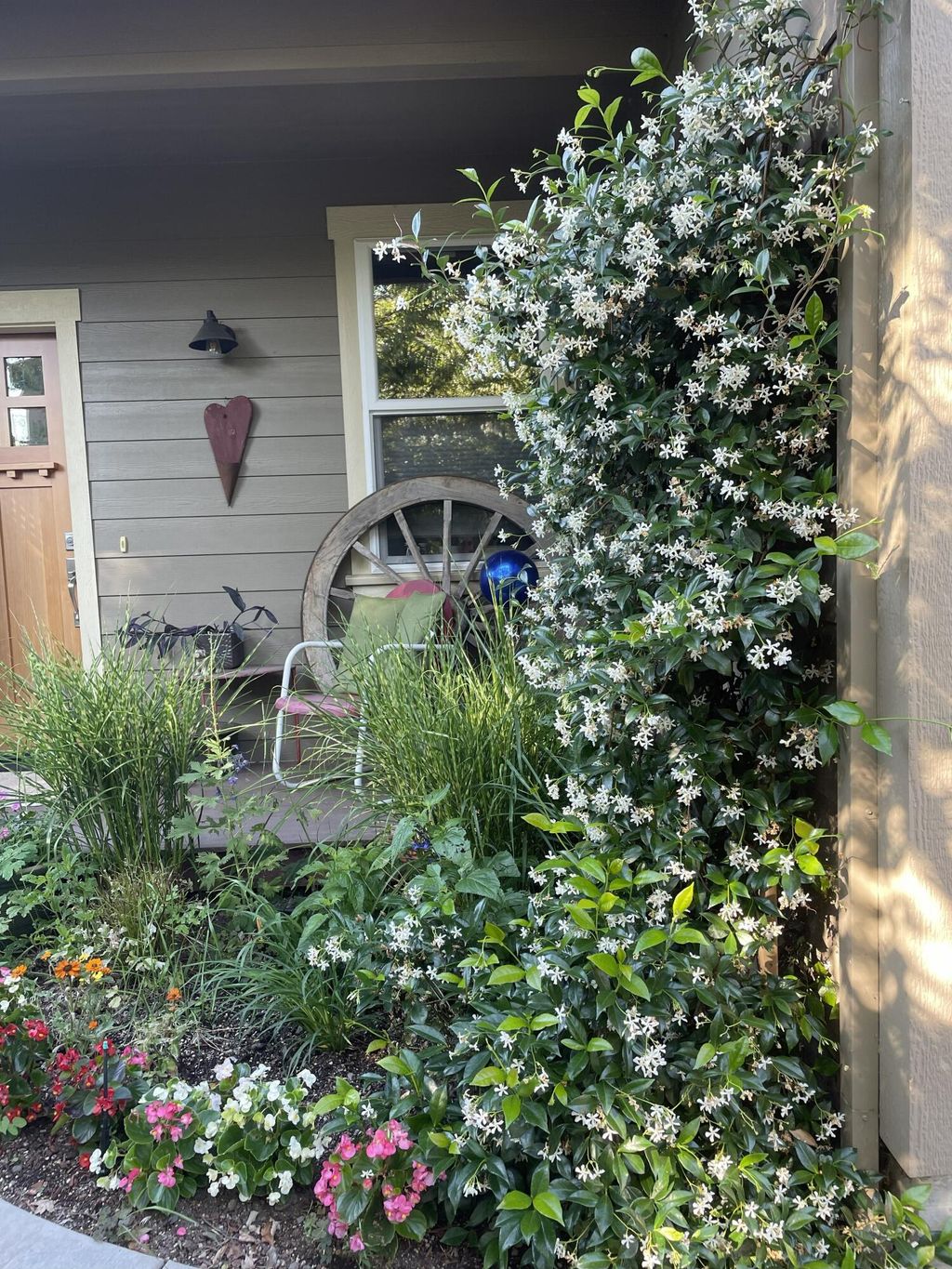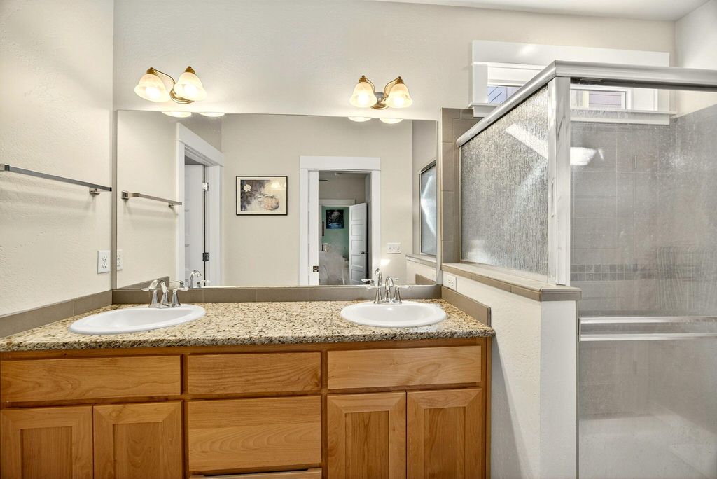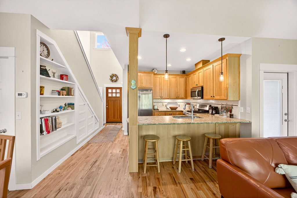 Built in 2015 by Suncrest LLC and certified as Earth Advantage Silver, this well-crafted three-bedroom, two-and-a-half-bath home offers 1,621 sq ft of comfort, quality, and a peaceful setting. The main-level primary suite includes dual sinks with leather-finish granite, a step-in shower, and abundant storage. The kitchen and living area feature matching granite, oak floors, and a cleverly designed pantry under the stairs. Upstairs are two spacious bedrooms, a full bath, and a roomy loft with built-ins.. The zoned HVAC system allows for separate control upstairs, providing year-round comfort. A charming front porch welcomes you home, while the Trex deck at the back overlooks state-designated wetlands, offering rare privacy despite nearby homes. The gas line is ready for outdoor cooking, and both the garage and shed provide generous storage. A quiet cul-de-sac setting close to downtown, cafés, and the post office makes this home especially appealing.
