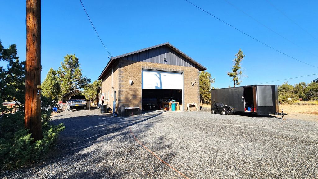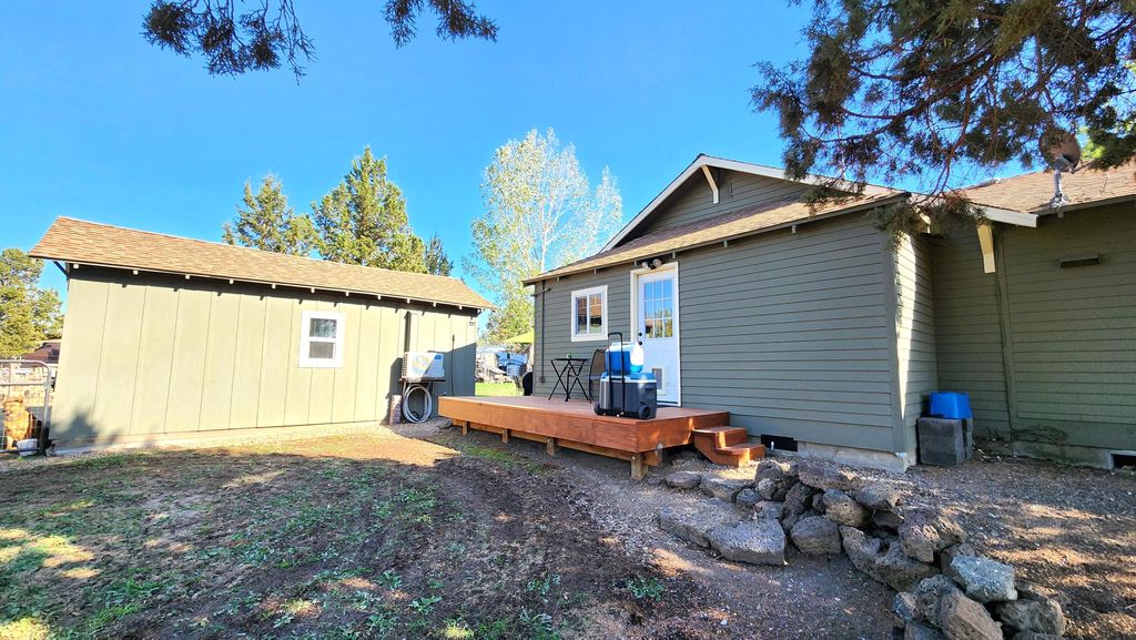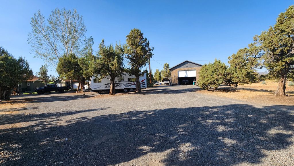 Home on 5.26 acres in Lake Park Estates community updated in late 90's. Minutes from Redmond, shopping, state parks, BLM, Prineville, Sisters, Bend, Crooked River, and Terrebonne. Centrally located for access to Hiking, Rock Climbing, Horseback riding, trails, skiing, and water sports with Smith Rock State Park just minutes away, from home you can ride your horse to BLM. Home has been remodeled and updated. Home offers a dining area with breakfast nook, office/media room located off kitchen, living room, laundry room, heat pump, pellet Stove, ceiling fans, pantry, and mud room. There is a finished detached bedroom with a mini split unit, big enough to possibly turn it into an ADU or just keep it for overflow guests. Opportunity for owner/operator with a large 1440 sqft Shop built in 2016 constructed with deco concrete blocks, insulated, ample power to run welder, tall roll up door with opener, concrete floor and an enclosed lean-to off the back. Fully fenced, flat lot.