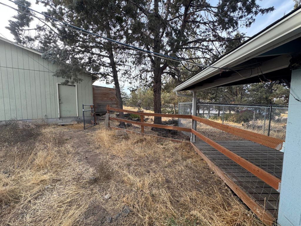 Discover this single-level home nestled in a highly desirable and quiet neighborhood"”just minutes from town, Cline Falls State Park, the Deschutes River, and Eagle Crest Resort, where you'll find fine dining & 3 golf courses. Situated on a fenced 1.13-acre corner lot toward the back of the subdivision, this property offers privacy and peaceful enjoyment of the outdoors. The home features a bright, open, and vaulted floor plan with a spacious wraparound deck perfect for entertaining or relaxing. Additional highlights include a newer mini-split heating and cooling system and a cozy wood-burning fireplace. This property also boasts nice outbuildings, including: a shop with a dedicated workspace, a large powered storage building"”ideal as a hobby room, gym, studio, or man cave, a dog kennel, & a covered carport. With its great location, functional layout, and usable space, this home is full of potential. Bring your vision and creative ideas to make this unique property truly your own!