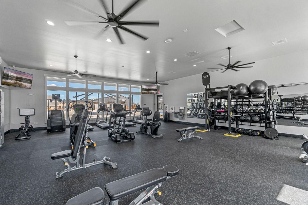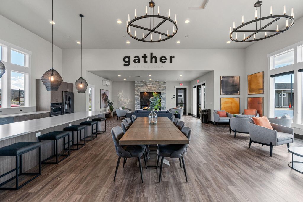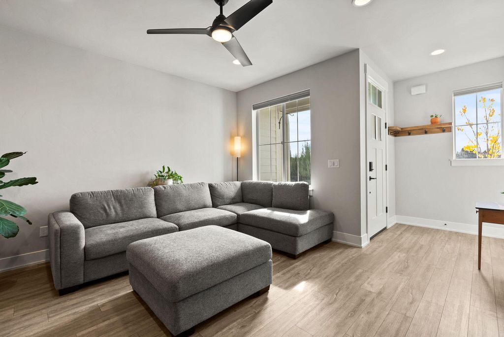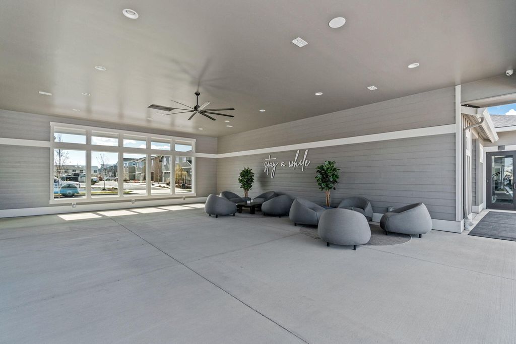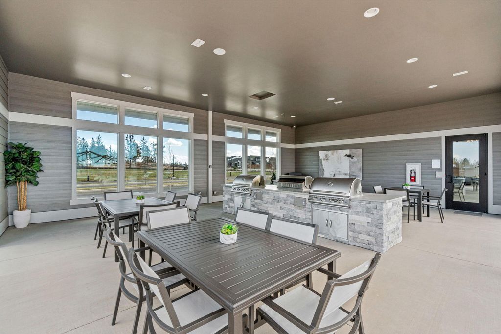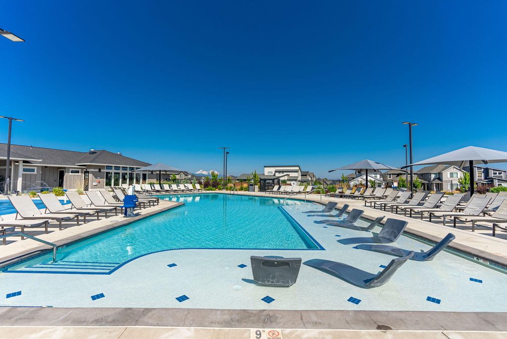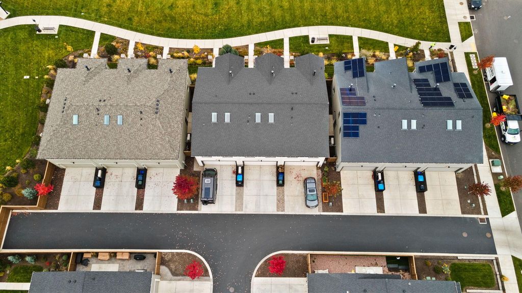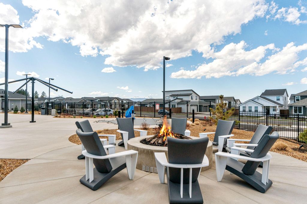Beautifully cared for and lightly lived-in Parkside townhome in sought-after Petrosa. Step inside to a warm and inviting open concept layout featuring a cozy fireplace and a bright loft filled with natural light from the skylights above. Stylish upgrades include white cabinetry, gray quartz counters, stainless steel appliances, 6-inch baseboards, and luxury vinyl plank flooring. The alley-access garage offers a full-length driveway and an insulated garage door. An energy-efficient ductless system is zoned for customizable temperature control on each floor. Take advantage of this award-winning neighborhood with a pool, park, clubhouse, fitness center, and community trails.