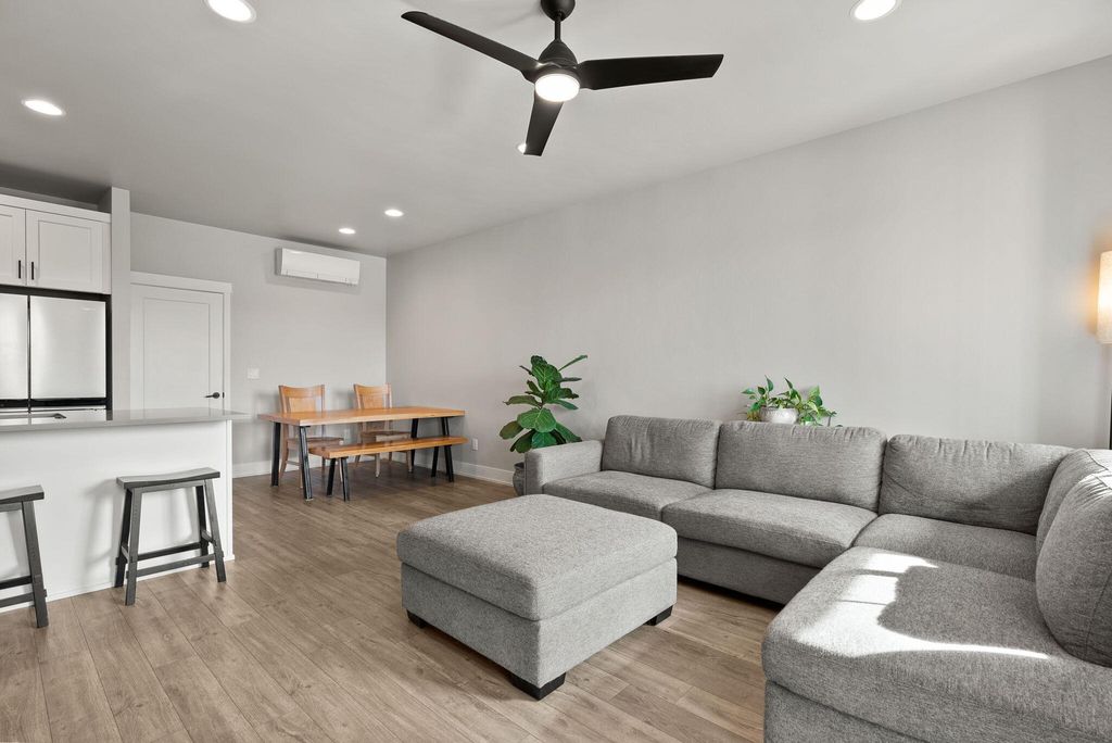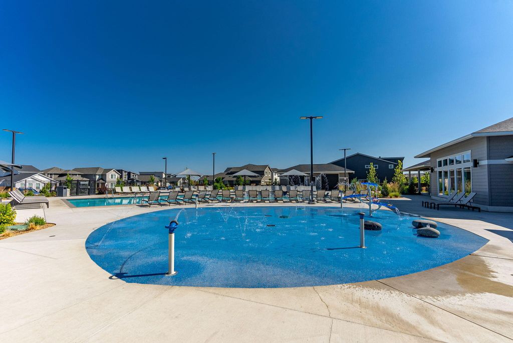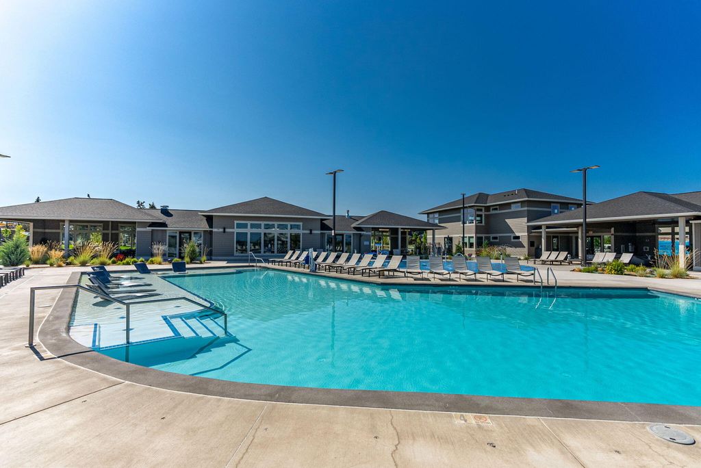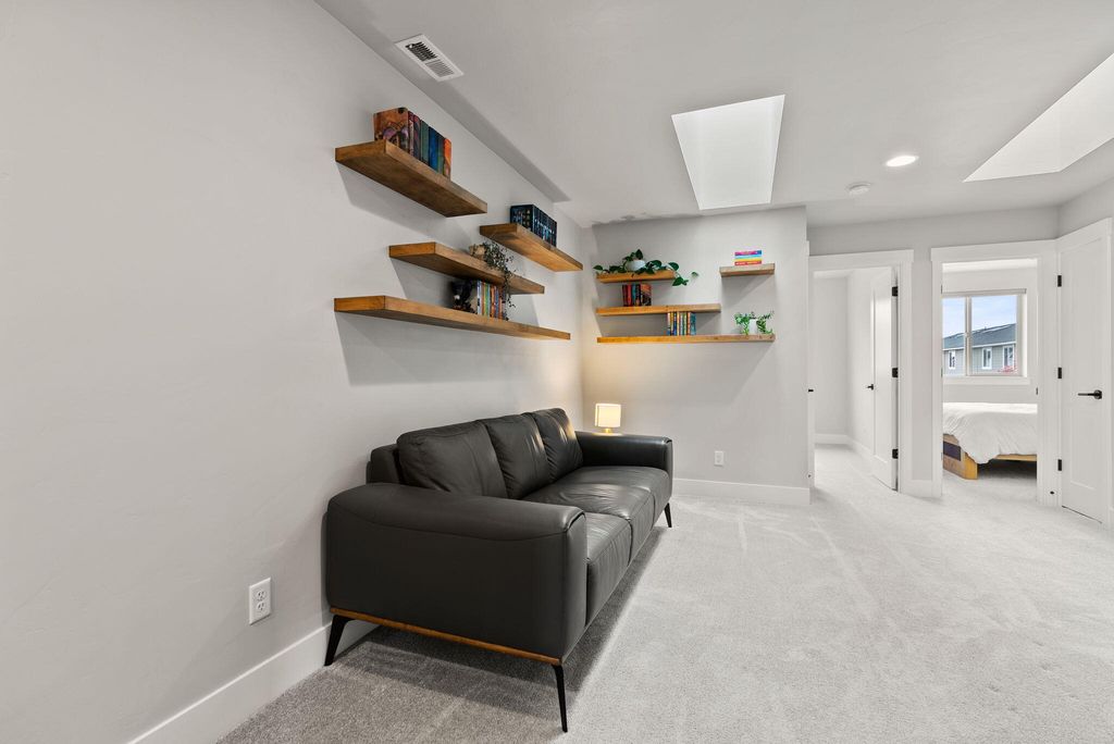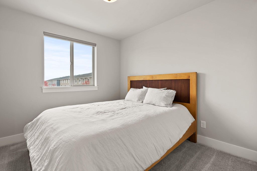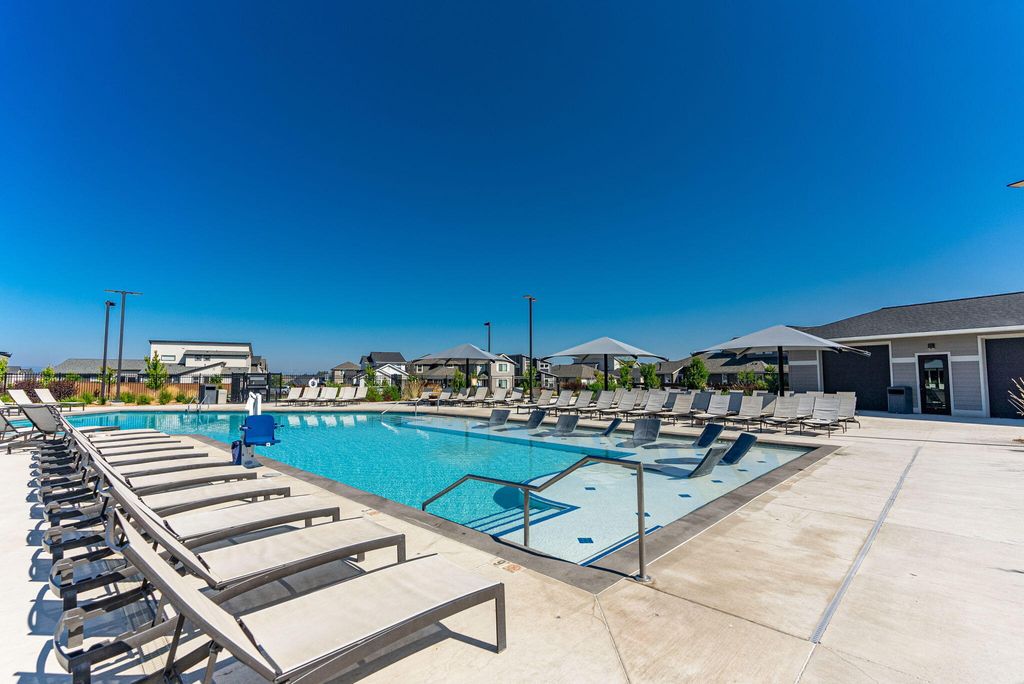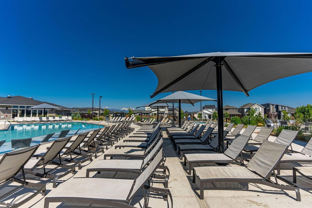 Beautifully cared for and lightly lived-in Parkside townhome in sought-after Petrosa. Step inside to a warm and inviting open concept layout featuring a cozy fireplace and a bright loft filled with natural light from the skylights above. Stylish upgrades include white cabinetry, gray quartz counters, stainless steel appliances, 6-inch baseboards, and luxury vinyl plank flooring. The alley-access garage offers a full-length driveway and an insulated garage door. An energy-efficient ductless system is zoned for customizable temperature control on each floor. Take advantage of this award-winning neighborhood with a pool, park, clubhouse, fitness center, and community trails.