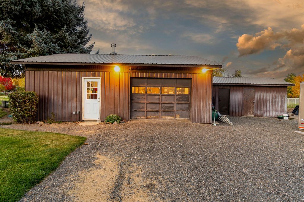 Front & back yards are nicely landscaped w/ mature raspberries, a large open deck for relaxing or hosting gatherings. Additional amenities include a double car attached garage, versatile shop, 220 power w/ full bath (potential guest space or bedroom), two storage buildings, an open bay shed for equipment or storage. Property with private well. Don't miss this rare country gem.
