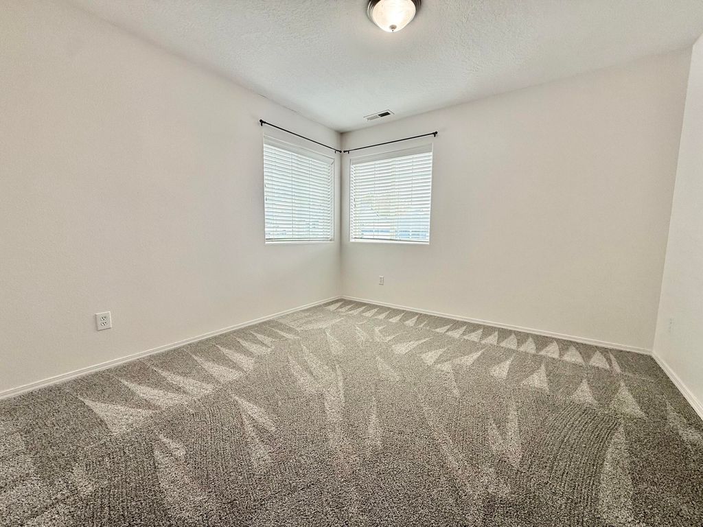 Perfectly laid out home with 4 bedrooms, including a huge primary, PLUS an office. When you walk into this inviting home, you'll find the main living area, complete with a gas fireplace, and the office nearby. From there the kitchen and dining are close by for easy entertaining. Off the kitchen there is a second living space and half bath. Upstairs are three generous rooms and a full bathroom, as well as the primary with a walk-in closet and its own full bathroom! This home has tons of storage, a smart thermostat and video doorbell. Fully fenced yard with covered deck. 2 car garage with brand new opener. Freshly painted exterior as well as newer paint, carpet, light fixtures and bathroom fixtures throughout the interior of the home. Solar panels. Forced air gas heat and new AC 2021. Book your showing today.