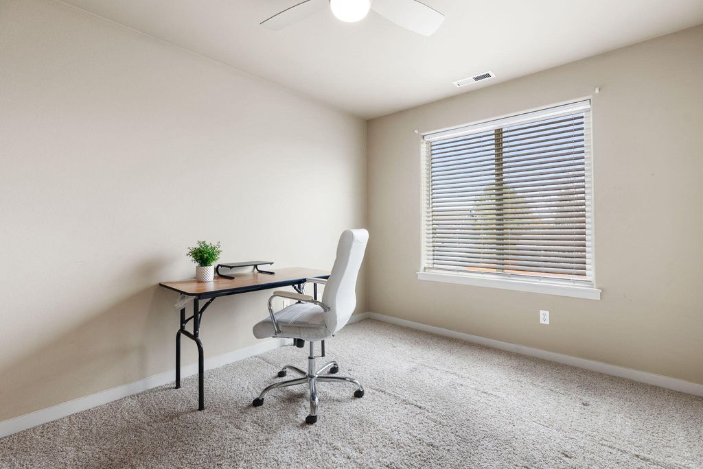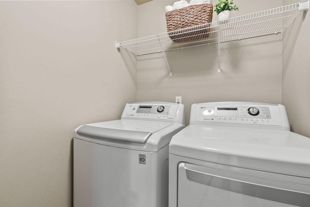An alley-access 2-car garage (416 sq ft) with ceiling storage racks. Natural gas heating and central A/C for comfort year-round. Located near parks, schools, the brand-new Stevens Ranch library, and Reed South with restaurants, gas, and more!