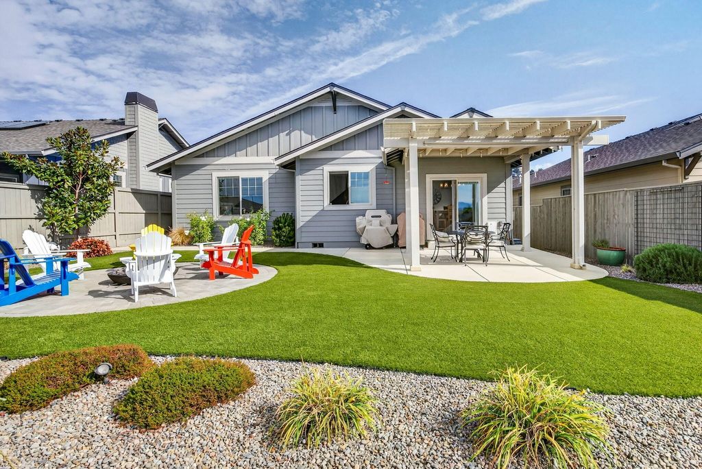 Amazing views from this immaculate, custom built, single-level home located in the 55+ Silver Oaks community. One of the best lots in the development; the backyard oasis is private from the other homes. This 2019 built home is loaded with extras. It has upgraded hardwood floors throughout, gas firepit with stone pavers, covered pergola, electric car charging station, beautiful turf lawn and a large patio area overlooking the valley. The interior has an island kitchen with quartz countertops, gas fireplace, tile in bathrooms and laundry room, vaulted ceilings, custom cabinets, ample storage, upgraded light fixtures and an open, bright floorplan. Some items that are included in the sale are the refrigerator, two TV's, ring camera system, and the custom gas firepit with surrounding adirondack chairs. It is Earth Advantage Certified for premium energy efficiency. This home is perfect for entertaining and delivers ease, comfort, views and modern convenience.