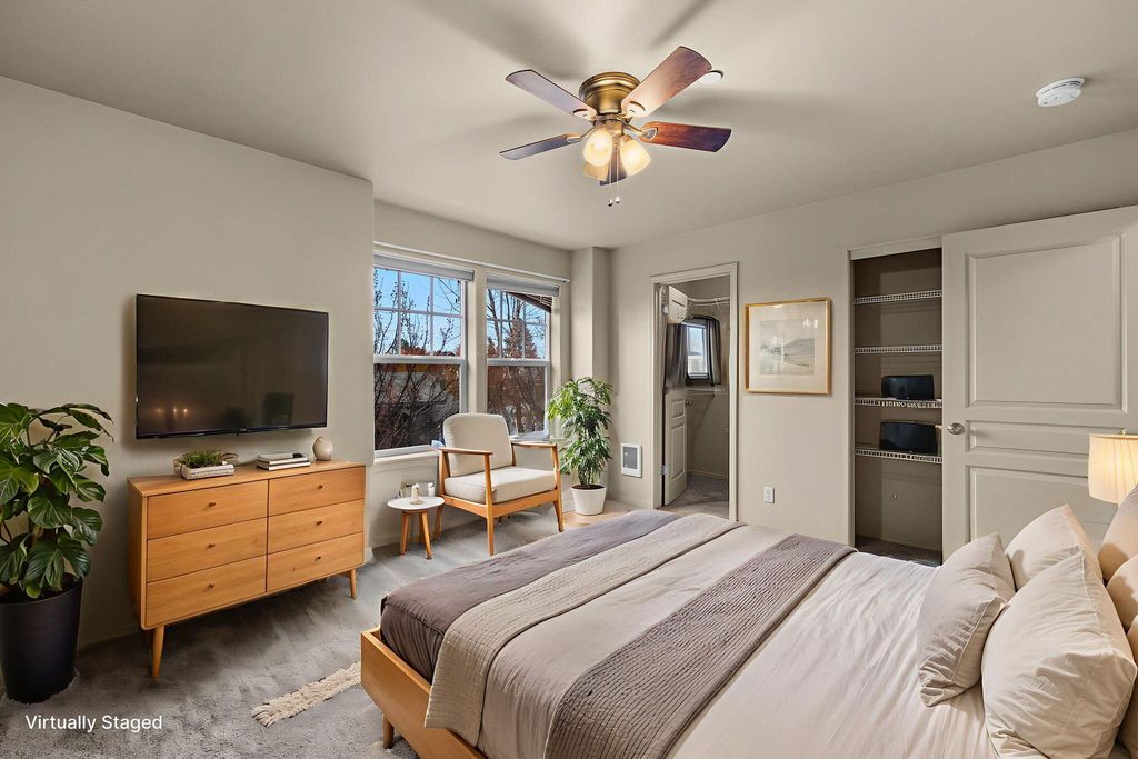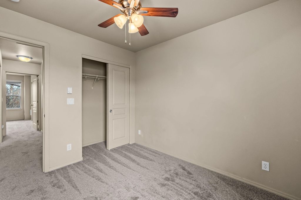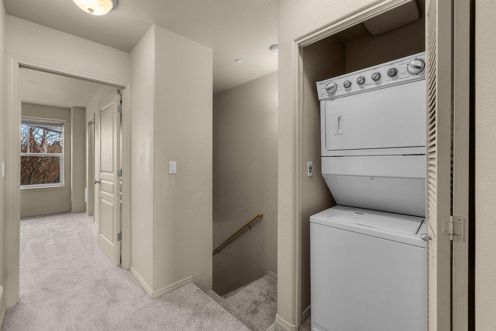 Rarely on the market - welcome to this desirable townhome community located in the Gardenside neighborhood, complete with its' own community park. Located just off the East Bend Canal Trail with quick access to all 27th Street's amenities - this home offers ease of living, beginning with a private and inviting entrance framed by a charming picket-fenced front yard & porch. Inside on the main level, you will find a spacious living room with a gas fireplace, brand new carpet, and hardwood floors. The kitchen boasts abundant cabinetry and a breakfast bar - while the pleasant dining area overlooks the fenced backyard and porch area. Upstairs, along with brand new carpet - you will find a large primary suite with a walk-in closet and full bathroom, two guest rooms plus a guest bath, and a stackable washer and dryer. This townhome is complete with a spacious single-car garage and driveway parking - perfect for parking and storing all your Bend adventure gear.