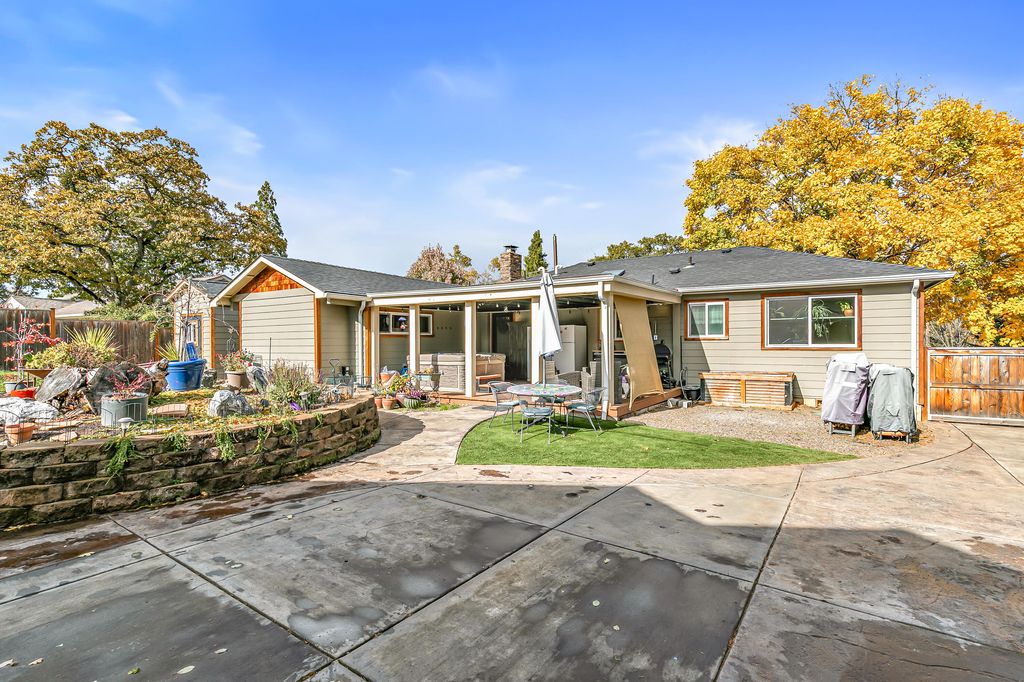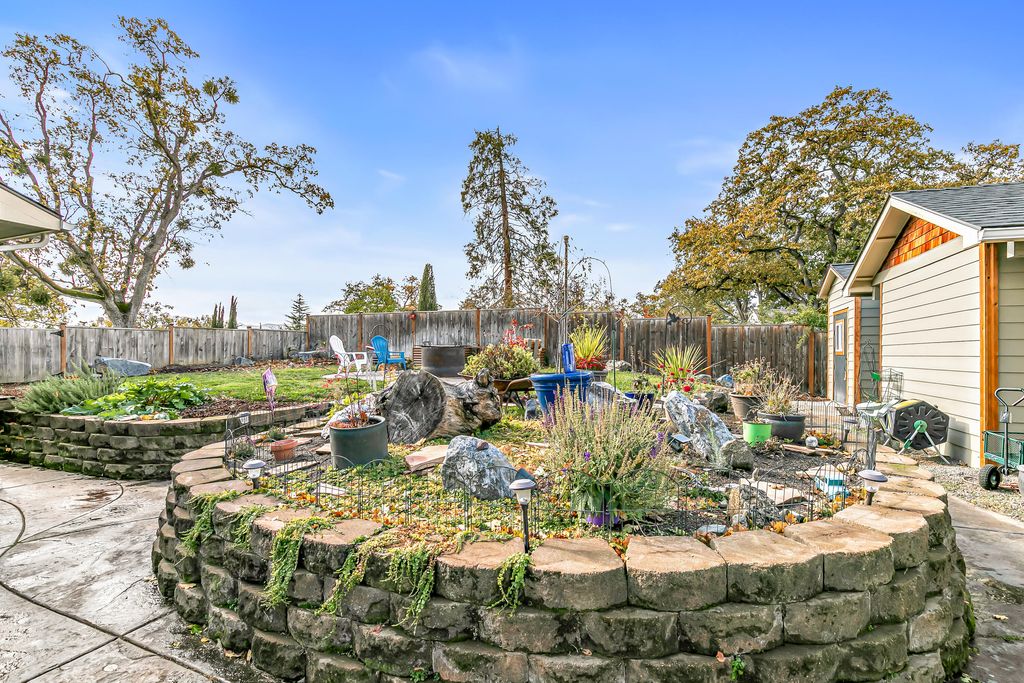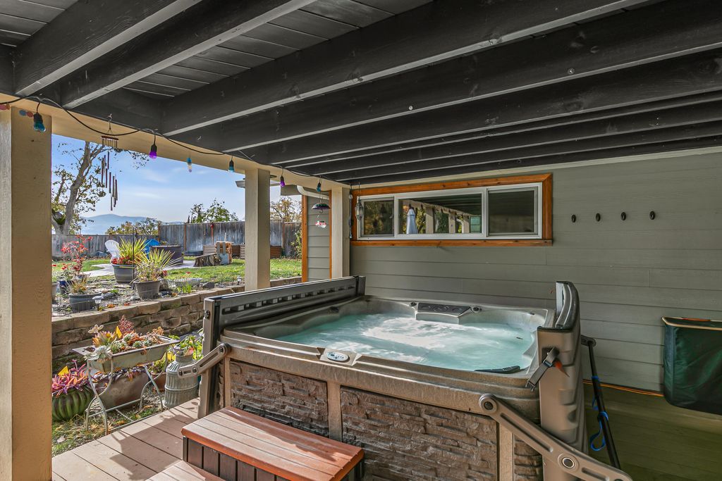 What a fantastic location! Convenient to schools, shops in a very private setting. Welcoming front covered porch with circular driveway. Beautiful Craftsman style home with hardwood floors, stone surround wood burning fireplace with custom walnut hearth, vaulted ceilings and open floor plan. Concrete kitchen counters with sit at bar, double ovens, gas top stove, large dining area & split floorplan for privacy are a few features of this cozy home. Recently remodeled primary bathroom with custom tile walk-in shower, rain shower head, stone countertop and ample cabinet storage. The rear covered patio has a large spa and room for dining with friends. Perfectly designed backyard with firepit and plenty of room for gardening. Also, a 10ft x 20ft shed for all your yard equipment. Let's not forget a large 2 car garage with an additional storage room and workshop area. Plenty of room for RV parking.