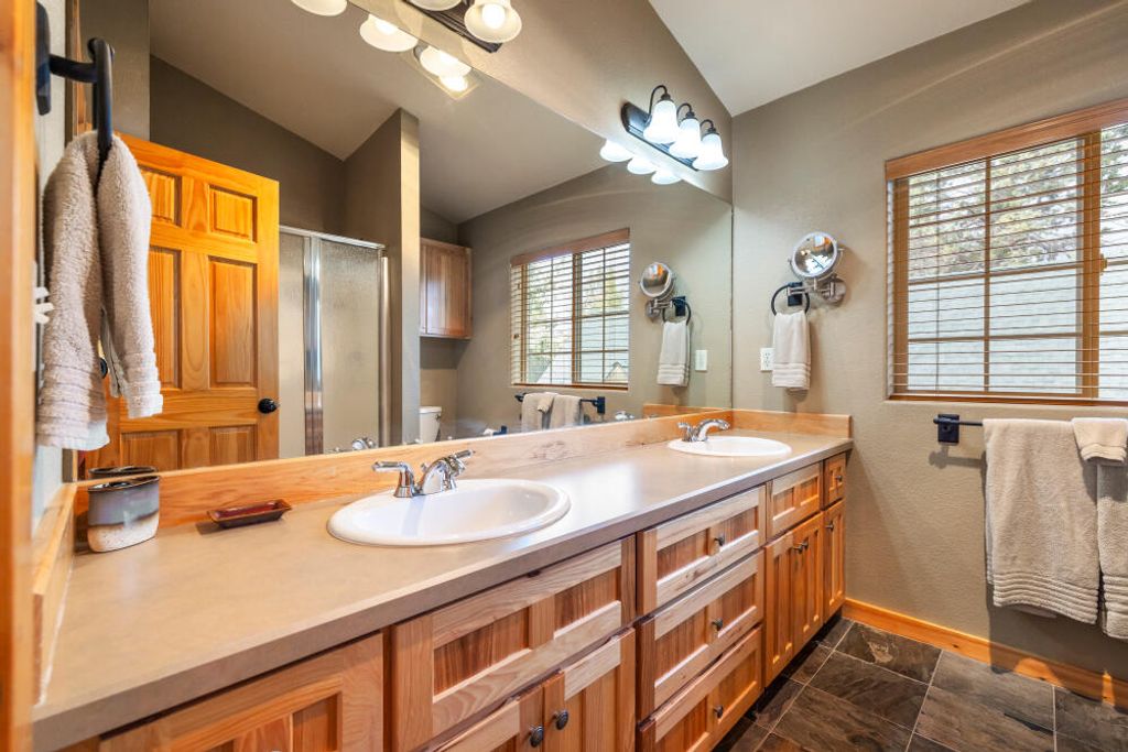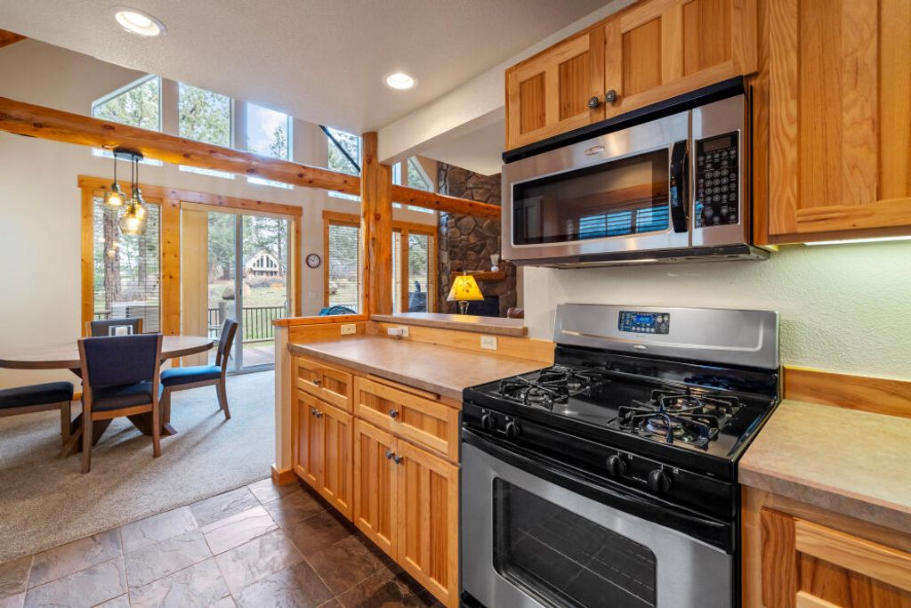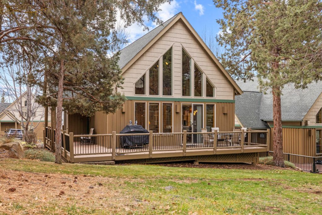 Beautifully maintained 2-bedroom, 2-bathroom chalet located in the desirable Running Y Ranch Resort. Both bedrooms are spacious serving as primary suites, perfect for guests or an in-law setup. The upstairs suite features a walk-in closet, an enclosed bathroom, and abundant natural light. The open concept living area boasts vaulted ceilings, upgraded carpet, wooden blinds, and a fully equipped kitchen with stainless steel appliances. A separate laundry room offers cabinetry and a full-size washer and dryer. This home is being sold fully furnished and currently set up as a successful vacation rental, complete with a fully stocked kitchen and comfortable furnishings. Step outside to the inviting deck and all the amenities the resort has to offer, including outdoor trails, indoor swimming pool, tennis and pickleball courts, fitness center, playground, and less than a 5-minute drive to one of Arnold Palmer's ''Sweet Sixteen'' golf courses. Clear pest and dry rot report on file