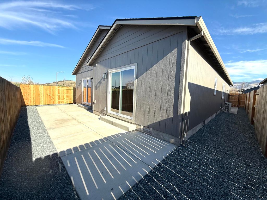 Beautiful well-designed home with lovely amenities. Granite Counters and Laminate or Tile floors throughout. Large open living area with vaulted ceiling and adjacent Dining area. Spacious kitchen with granite countertops, large island with eating bar, pantry and stainless appliances. Utility room w/ sink and cabinets. Master Suite includes large walk-in closet, barn door into bath, double vanities and large linen cabinet. Office, guest bedroom and guest bath with tub/shower and large linen cabinet complete the home. Large rear patio. Front yard landscaped. Back yard fenced with sprinklers stubbed for future plants or pots. HOA Dues of $205/mo. cover clubhouse, pool, garbage, front landscape maintenance and open space area with walking paths.