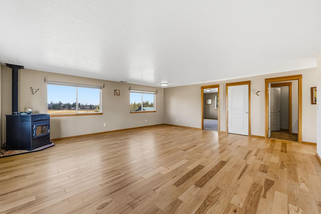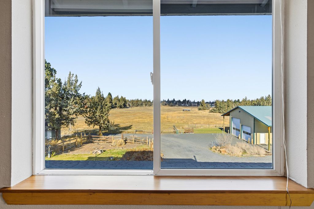 Welcome to your peaceful slice of rural living in the eastern outskirts of Bend! This inviting 2,825 sq. ft. home offers 4 bedrooms, 2.5 baths, mountain views and so much charm. Enjoy cooking your favorite winter meals while the propane stove in the dining room keeps you warm or curl up by the wood stove in the main living and look out over the 6.73 acres of beautiful, partially irrigated grounds. Primary is on the lower level, along with a flex space. Remaining rooms are upstairs, accompanied by an additional living space with its own pellet stove. Property features include 2-car garage, covered wrap-around porches, gravel driveway, partially covered back patio, low-maintenance landscaping, and a beautiful pond. 30x60 shop, with 10' and 14' doors, that includes a full bathroom. 3 full RV hookups are available for use, along with many areas for additional parking and storage. You'll have to visit to see just how many incredible features this property has to offer.