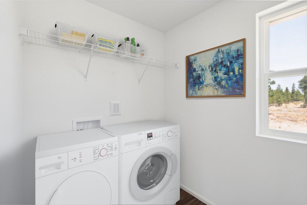 This new construction home is located at Reserve in the Pines, a beautiful community in La Pine surrounded by year-round outdoor recreation. The Blair plan features an inviting first floor with an open-concept layout that connects the great room, kitchen with large pantry and dining nook with access to the patio. Upstairs are three bedrooms, including a primary suite with an en-suite bath and a walk-in closet for comfort and privacy. Interior highlights include quartz countertops, shaker-style cabinetry, and LVP flooring in the kitchen and bathrooms. This home includes central AC, refrigerator, washer and dryer, blinds, and a xeriscaped front yard with a drip irrigation system, all at no extra cost! Homesite #95. Est. completion: March 2026. Rendering is artist conception only. Photos are of a similar home, features and finishes will vary. *Below market rate incentives available when financing with preferred lender.*
