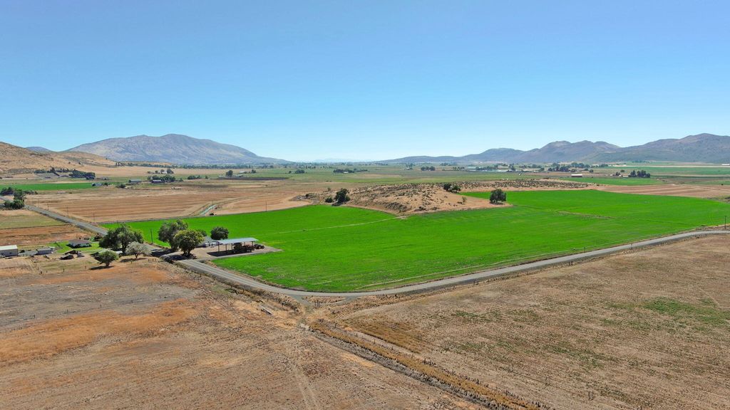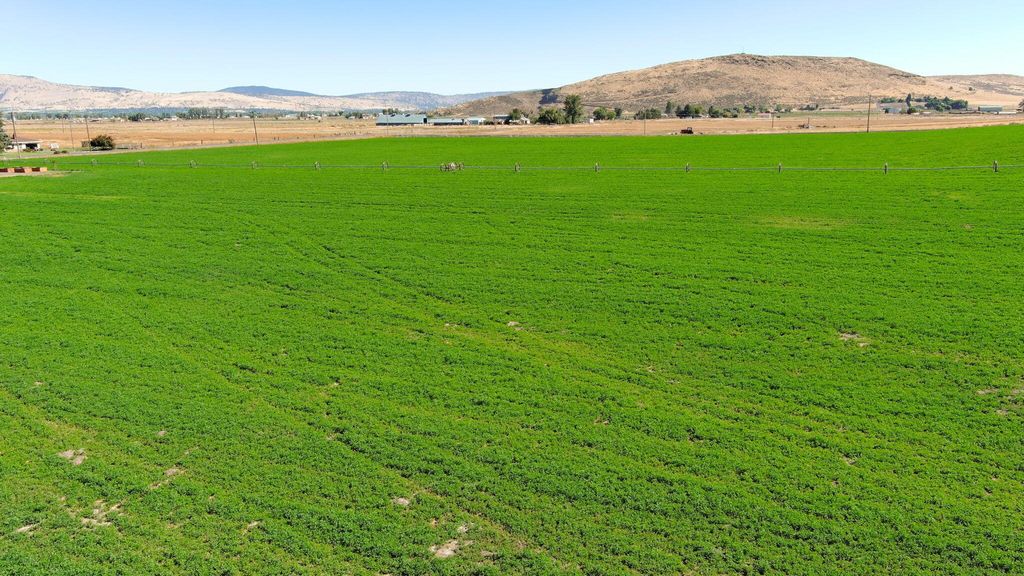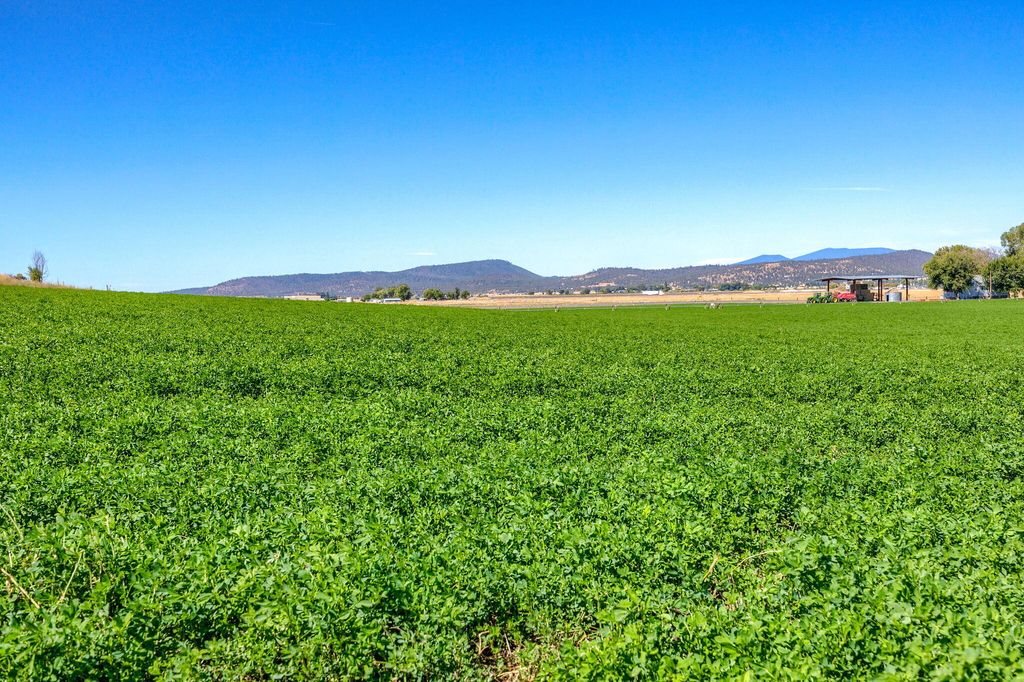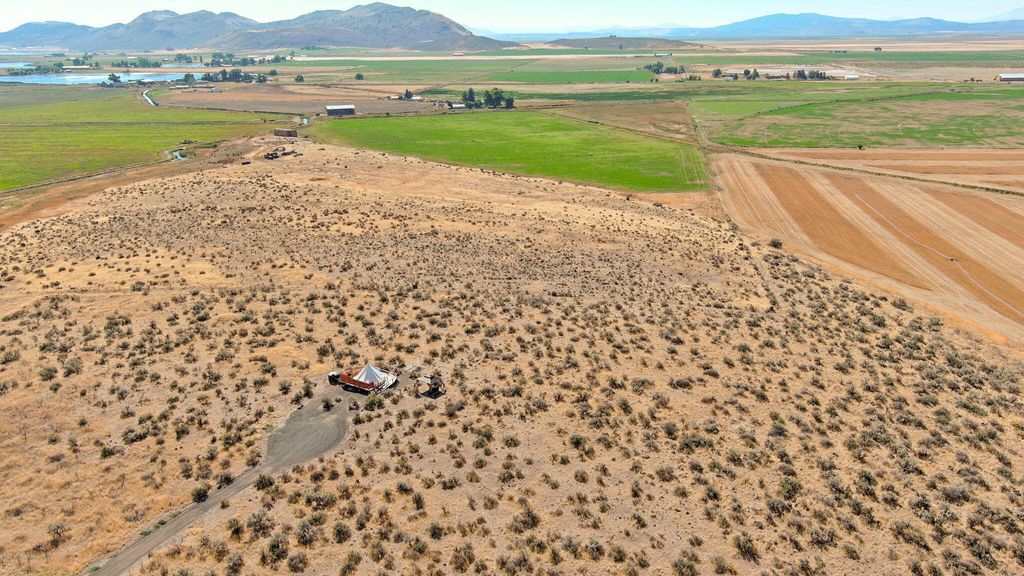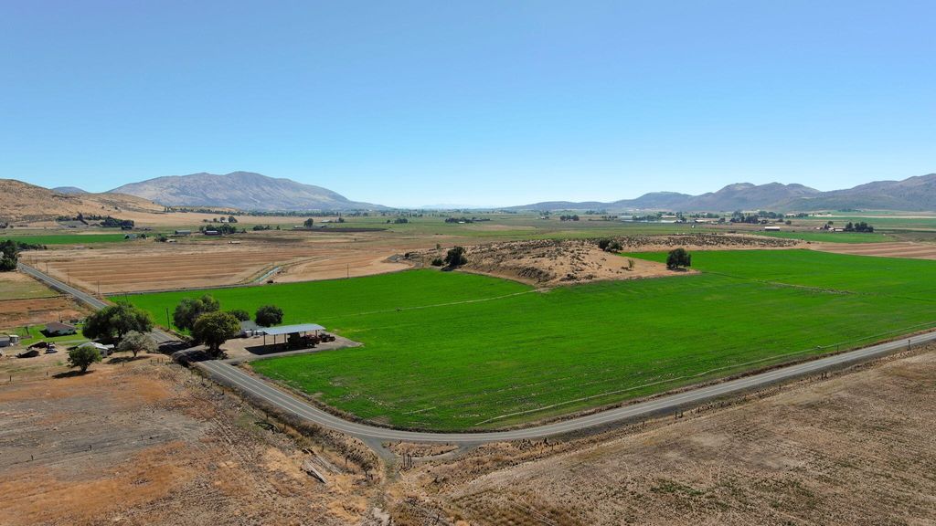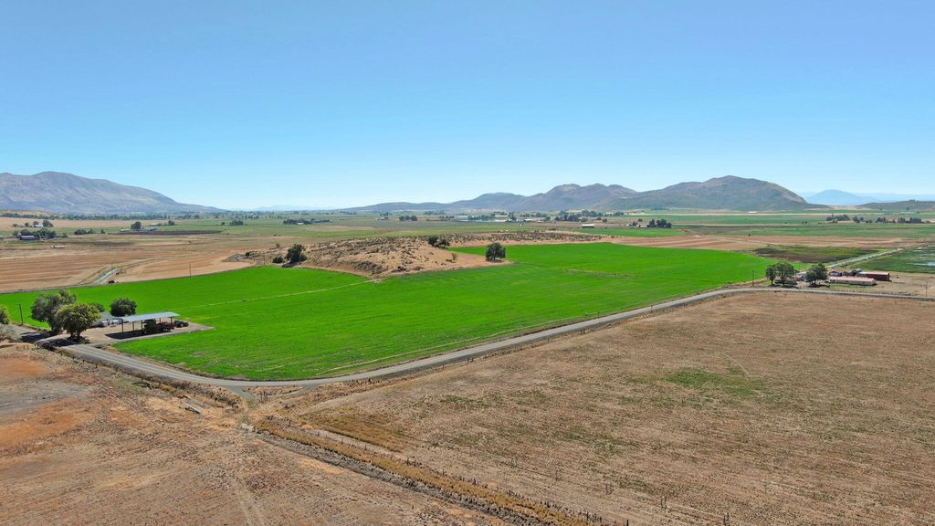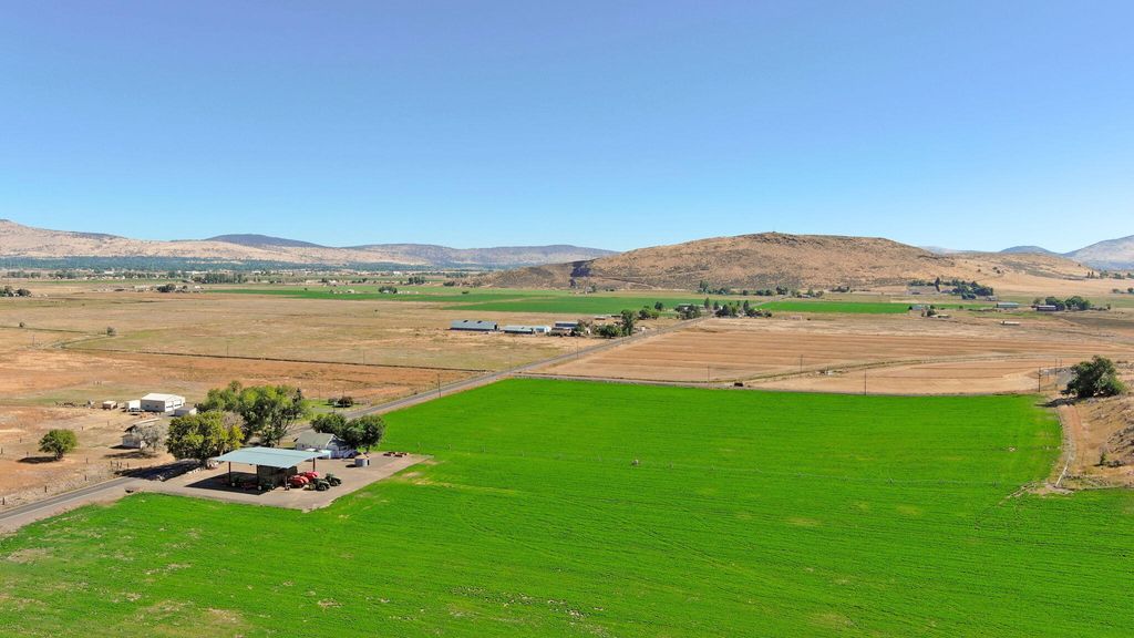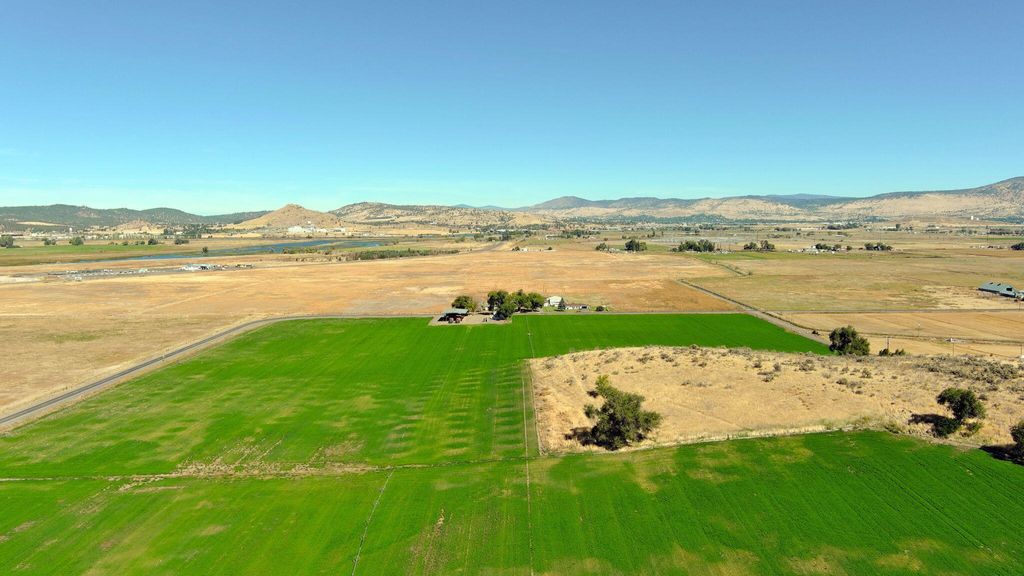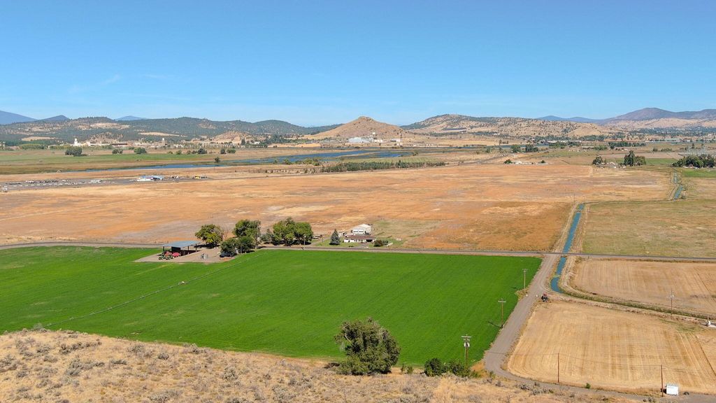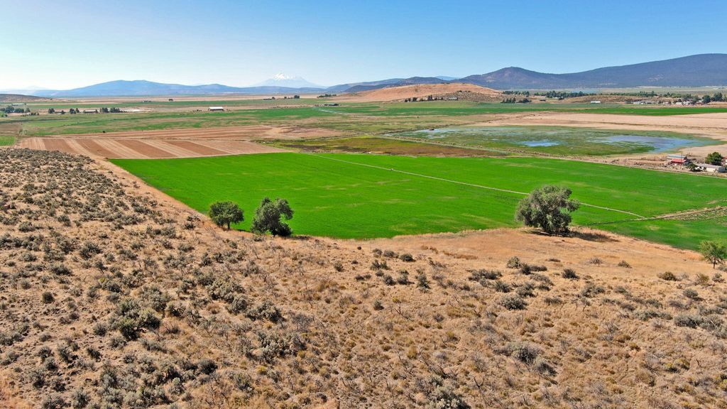 The Rossetto Ranch is on the market! Scenic beauty meets income-producing potential. This one-of-a-kind 187± acre farm/ranch property captures breathtaking views of Mt. Shasta and the surrounding countryside. In the heart of Klamath farmland, this true agricultural property offers multiple income streams including a charming home, off-grid glamping site with potential short-term rental income, seasonal hunting lease, alfalfa crop lease, annual grain production and premium irrigation rights with an abundance of water. The upgraded irrigation systems, rich soils, and laser-leveled fields make this a farmer's dream. The landscape blends rolling hills, open pasture, and a small wetland flourishing with wildlife. 56x80 steel pole barn, newer 75 & 100 HP VFD pumps, updated main lines, fencing, and ranch roads. The updated-modern country farmhouse shines throughout with potential for an additional dwelling and possible partition into three parcels (per County Planning).