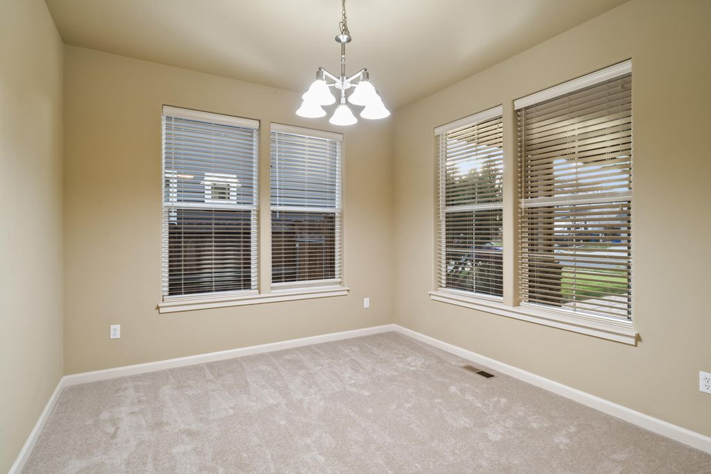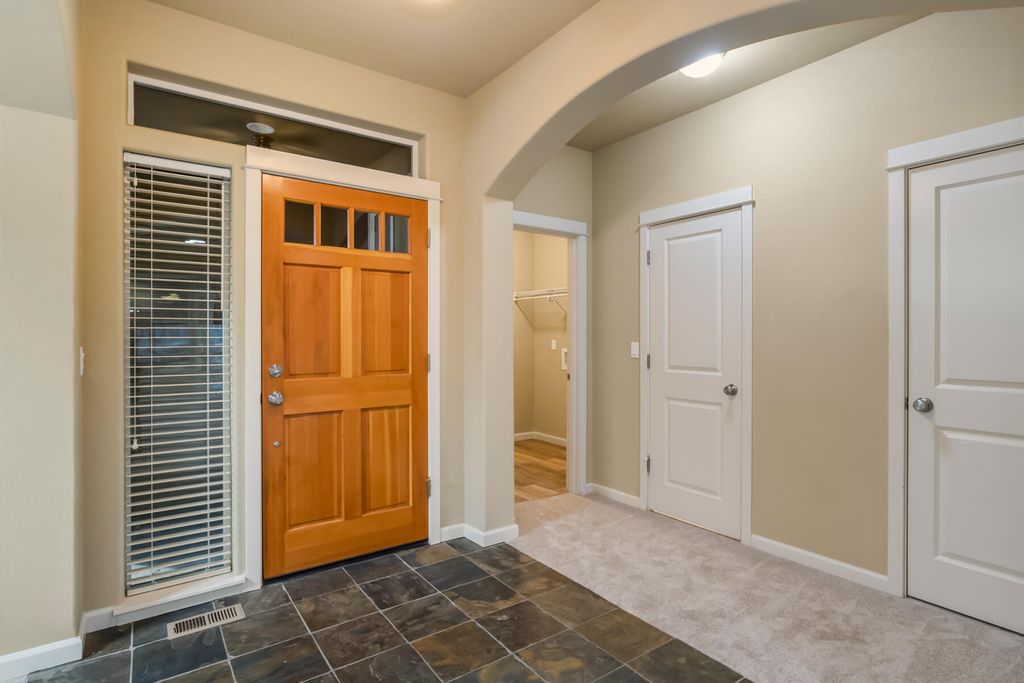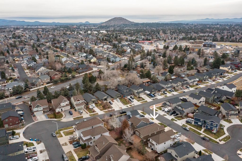 Built by Monticello Homes in a quiet NE Bend neighborhood, this well-constructed and well-maintained home sits just a stone's throw from 159-acre Pine Nursery Park. A thoughtful floor plan features arched doorways, a dedicated den/dining room, and an open living room and kitchen with gas fireplace and sliding door access to an expansive, completely-covered concrete patio perfect for year-round outdoor living. Upstairs, a split-bedroom layout offers privacy, with the primary suite separated on one side. The primary features vaulted ceilings, French doors, a double vanity, soaking tub, and spacious walk-in closet. A versatile loft space provides room for a home office or bonus area. Additional highlights include new carpet throughout, a powder room for guests, a second full bath with double vanity, and a private, fully-fenced backyard with space for raised garden beds. Super clean and move-in ready with no HOA and easy access to NE Butler Market Road. Less than 15 minutes to downtown.