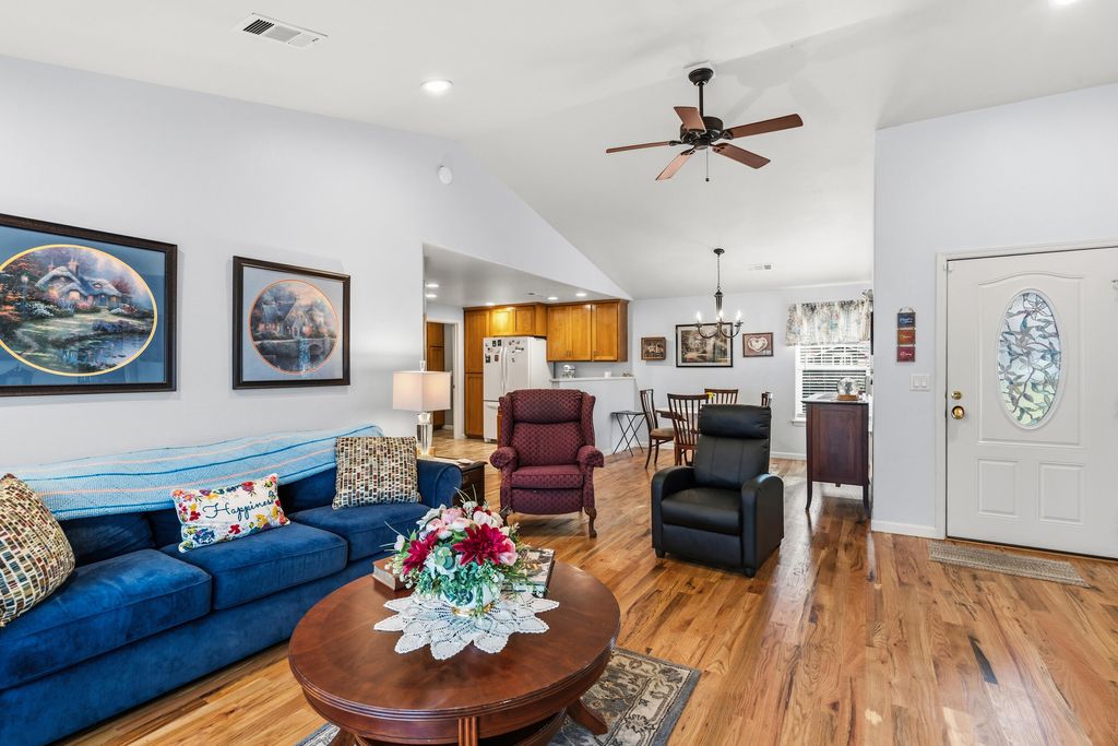 Spacious Layout: Vaulted ceilings with designer fans create an airy, open feel throughout.