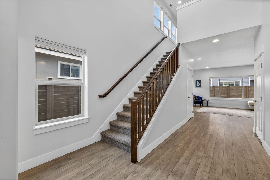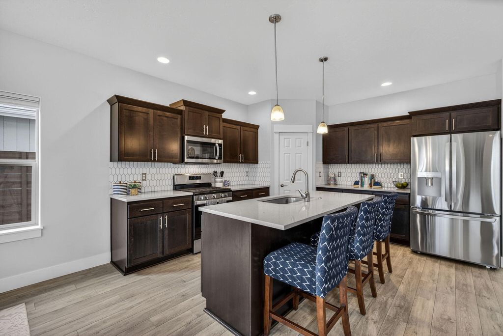 Flooded with natural light from oversized windows, this immaculate, lightly lived-in home feels warm, bright, and welcoming. The soaring entryway opens to an easy-living floor plan featuring an oversized quartz-island kitchen with stainless steel appliances and a stone-surround gas fireplace. The fenced, turfed backyard offers low-maintenance enjoyment while the HOA maintains the front yard. Upstairs, you'll find all bedrooms, a generous landing, a laundry room with sink, and a serene primary suite with soaking tub and tile shower. Upgraded to include epoxy floors in the garage, gutters installed, and air conditioning. Enjoy community perks, including use of the pool, plus quick access to miles of trails at Pine Nursery and Alpenglow Parks. Tucked into the established, desirable Bend neighborhood of Stone Creek, just blocks from Silver Rail Elementary School. Make this warm and welcoming Bend home your own!