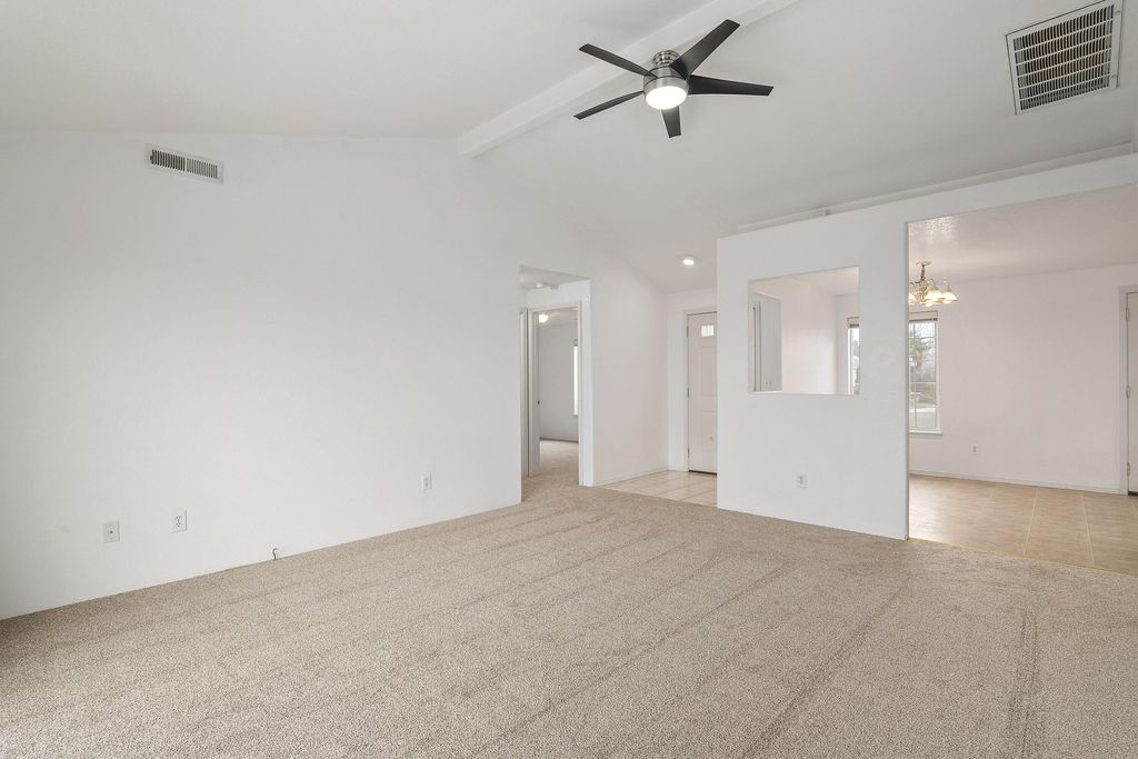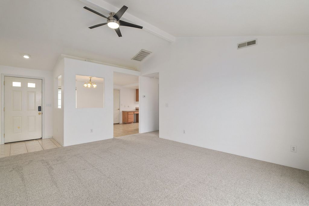 Welcoming 3-bedroom, 2-bath single-level home with 1,209 sq ft of comfortable living space and an attached 2-car garage. Inside, you'll appreciate the fresh interior paint and new carpet throughout, creating a clean, move-in-ready feel from day one. The open living area features vaulted ceilings and double pane windows that invite in natural light. The kitchen offers an eating nook perfect for casual meals, homework, or morning coffee. Stay comfortable year-round with efficient double pane windows and air conditioning for the warmer months. Outside, the fenced yard provides room for pets, play, gardening, or simply relaxing, with space to personalize to your needs. A practical floor plan, modern essentials, and low-maintenance livability make this a great option for first-time buyers, downsizers, or anyone looking for a nicely kept single-level home in a convenient location.