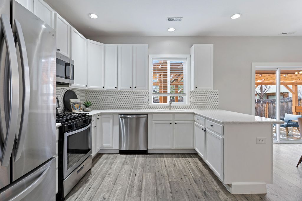 Great opportunity to own your own home or income producing investment property in NW Bend. This completely remodeled home sits on a quiet, tree-lined street with close proximity to Riley Ranch Nature Reserve & Harvest Park/playground. The recent remodel includes interior paint, luxury vinyl flooring downstairs, quartz countertops and new backsplash in kitchen/baths, new stainless-steel appliances, new lighting & hardware throughout. As you enter the home you will find a light-filled room that would be perfect as a den, office, additional living or dining room. The spacious eat in kitchen overlooks the great room with corner fireplace and slider out to the pergola covered & fenced yard (with shed), perfect for entertaining. A powder bath and laundry room complete the downstairs. Upstairs is the Primary Suite and 3 additional bedrooms and another full bath. All of this near shopping, trails, and schools. Make this one your Bend basecamp and start planning your adventures today!