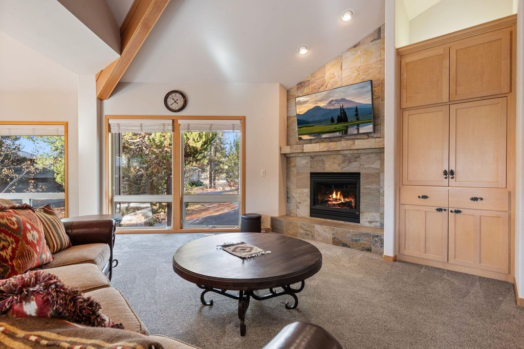 24 Bunker is positioned on an absolutely beautiful street on the North end of Sunriver! Backing directly to the trail system, this home blends instant adventure with serenity. A rare find, it has been a cherished private sanctuary, never rented, and remains in immaculate condition. Inside, rich wood accents and soaring windows create a bright, lodge-inspired atmosphere. The versatile layout features two en-suite bedrooms and a massive living room with fire place, easily serving as a 4th bedroom or game room/ bonus space. A heated 3-car garage offers supreme year-round storage for all your Central Oregon gear. Enjoy total peace of mind with significant recent capital improvements: New Roof, A/C, and Furnace (2024), Water Heater (2023), and fresh Exterior Paint (2022). Outdoor living shines on the generous deck with an awning and private hot tub (2022). This is the perfect blend of comfort, privacy, and turn-key luxury ready for immediate enjoyment. This is a must see property!