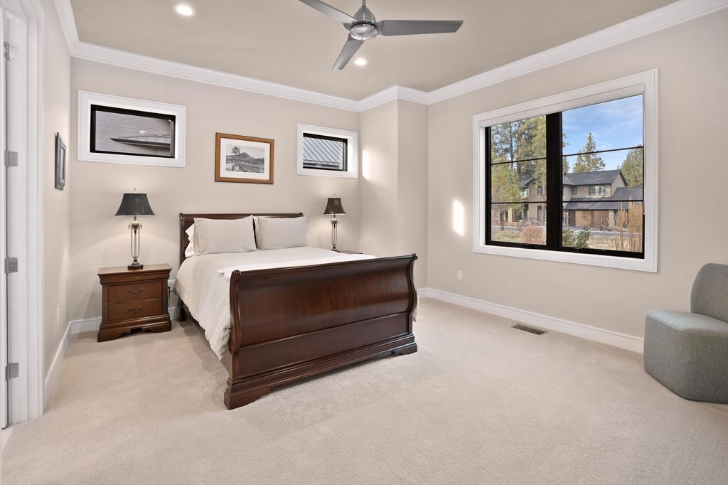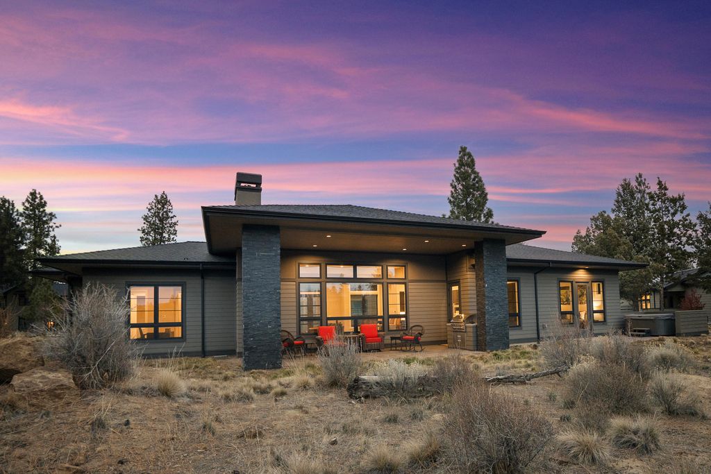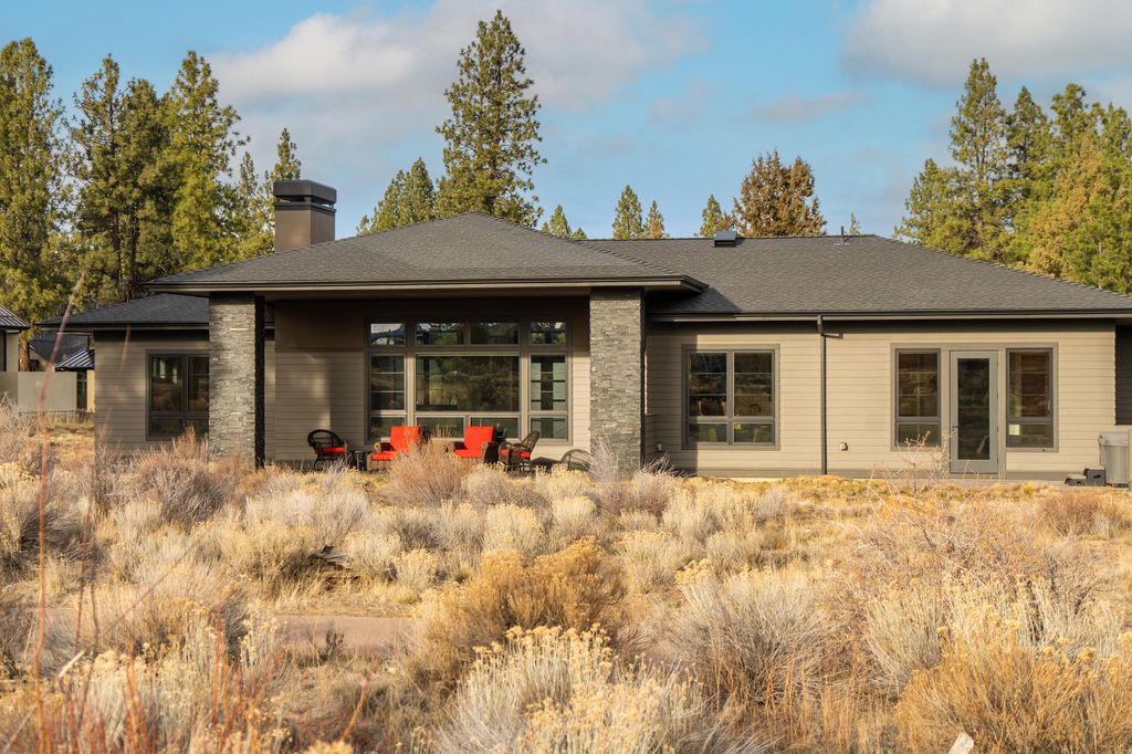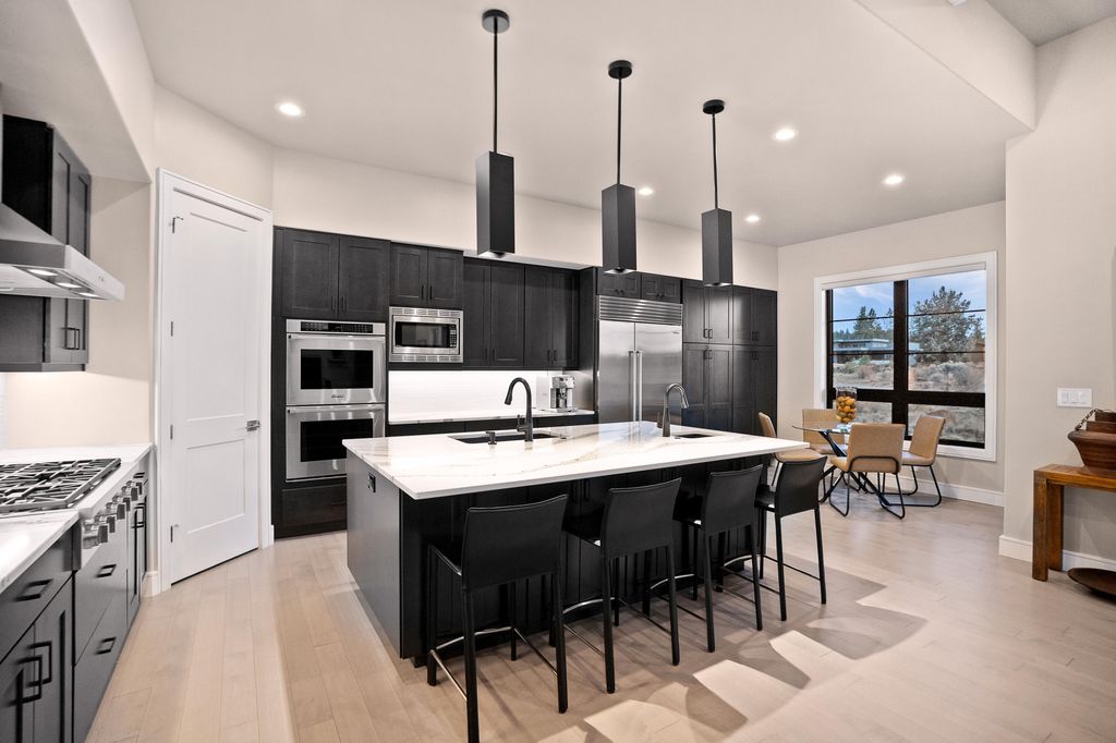 Single-level elegance meets elevated Bend living in this 3,115 sq.ft. Tetherow home, set along the 13th fairway with Mt. Bachelor views framed by stately ponderosas. The chef's kitchen features Cambria surfaces, Dacor double ovens, a 6-burner range, and a 48'' Sub-Zero, opening to a bright great room designed for easy gathering. Two generous sized bedrooms plus an office/optional third bedroom offer flexibility and comfort. A temperature-controlled 600+ bottle wine room, covered outdoor space with built-in BBQ, and low-maintenance landscaping make hosting simple. The primary suite brings a spa-like feel, and the oversized three-car garage has room for all your Central Oregon gear. With Earth Advantage Gold certification and quick access to trails, golf, dining, and downtown, this home delivers the Tetherow lifestyle at its best, just minutes from everything Bend has to offer.