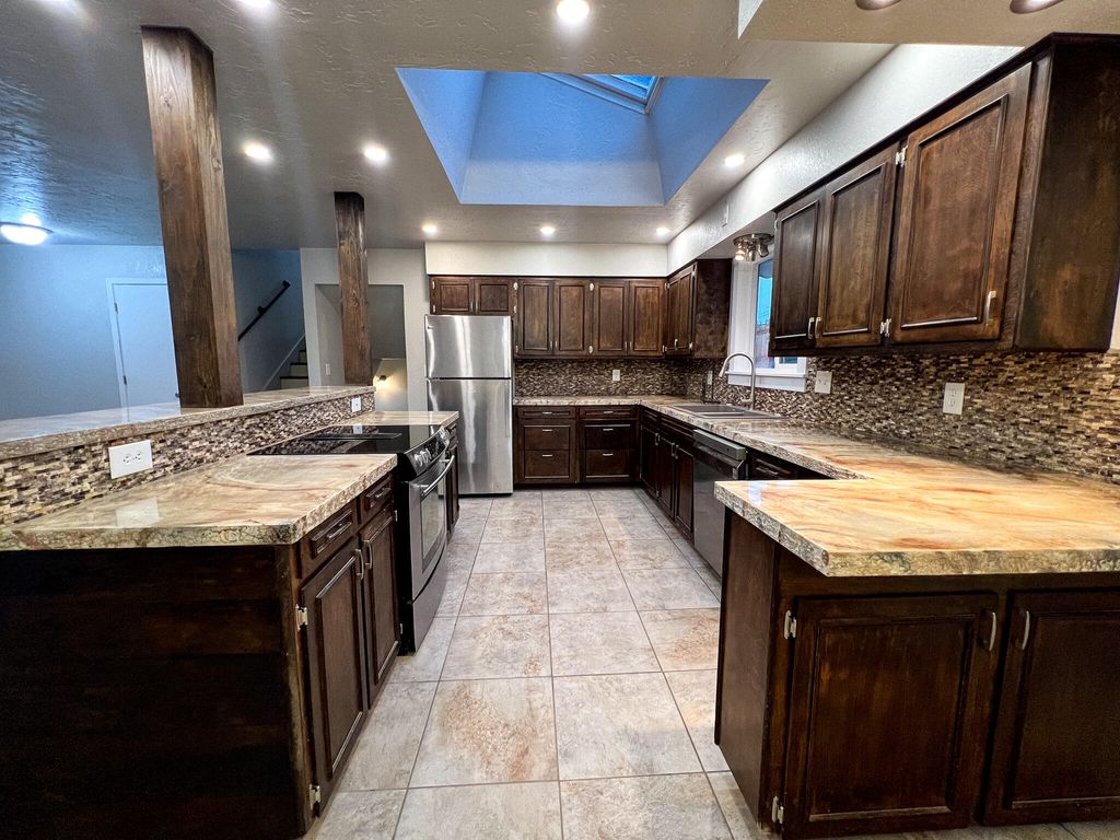 This move-in ready home offers views of the valley and Canyon Mountain. You can step into a spacious great room, measuring approximately 767 square feet, which features a wood-burning fireplace and a bartop that is perfect for entertaining.