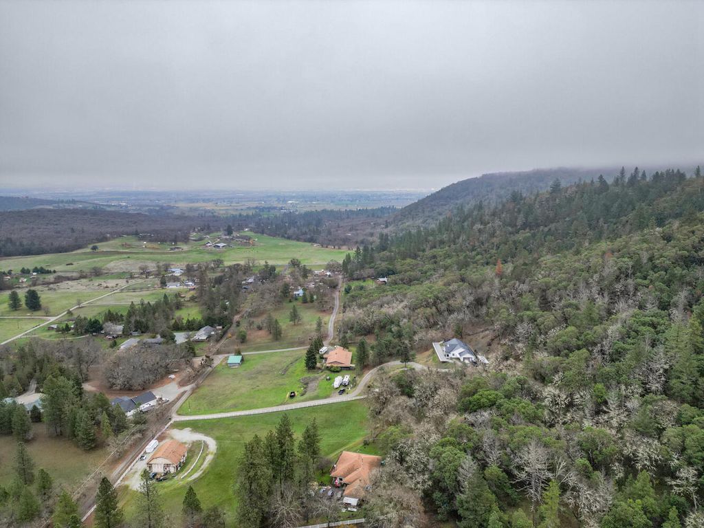 Set among wooded hills of Glen Echo, nearly 5 acre property borders 714 acres of BLM land & offers rare privacy, views & opportunity. Home is positioned high on knoll, w/ mature trees & open meadow w/ expansive views of Table Rocks & Crater Lake Rim on clear days. Main living space is designed for single level living & features cozy country kitchen, brick fireplace & oversized windows that fill home w/ natural light & surrounding scenery. Second driveway behind home provides direct access to main level without using stairs. Multiple covered patios create perfect setting for quiet mornings or relaxed evenings while taking in views. Daylight lower level has own entrance & works well for guest space, multi generational living or potential rental use. W/ a barn, irrigated pasture & covered dog runs, property is well suited for animals & variety of uses. Just minutes from town & historic Jacksonville by way of scenic Old Stage Road, this property captures the feel of Southern living.