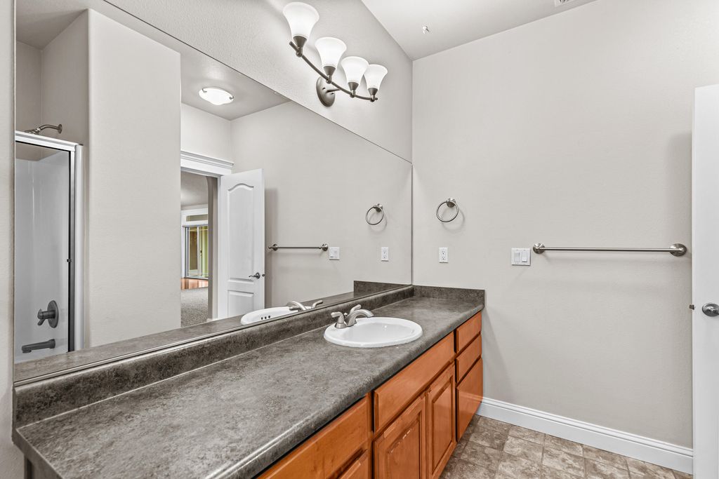This beautiful 3 bedroom, 2 bath home offers 1,643 sqft of thoughtfully designed living space on a landscaped .19 acre corner lot. Vaulted and recessed ceilings, paired with a stone wrapped gas fireplace, create an open, inviting atmosphere. Real hardwood flooring flows through the main living areas, adding timeless character and durability. The kitchen features granite countertops, stainless steel appliances, a gas range, and a dedicated pantry for added storage. The primary bedroom serves as a private retreat with a walk in closet and private access to the backyard, perfect for quiet mornings or relaxing evenings. With quality finishes throughout and a layout designed for comfort and functionality, this is the perfect home for your next move!