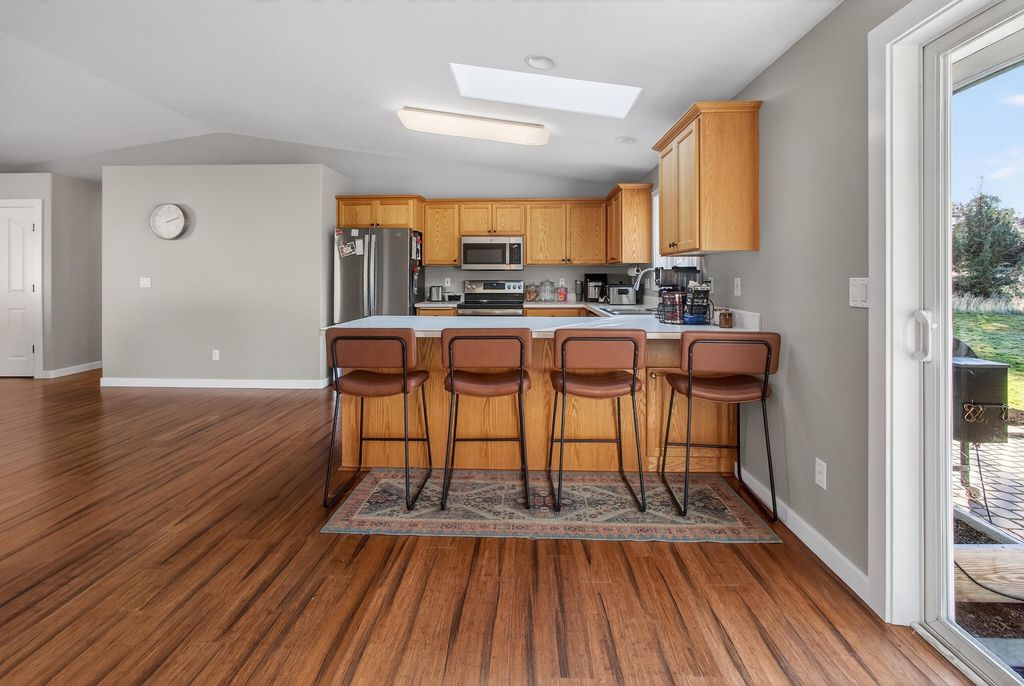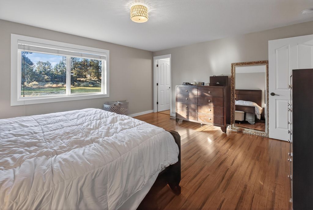 Escape to your own private sanctuary in the highly desirable Tetherow Crossing. This well cared for 3 bed/2 bath single-level home sits on over 4.5 acres, offering privacy and high-desert tranquility. You are welcomed into the home with an open floor plan full of natural light showcasing the beautiful wood flooring throughout.