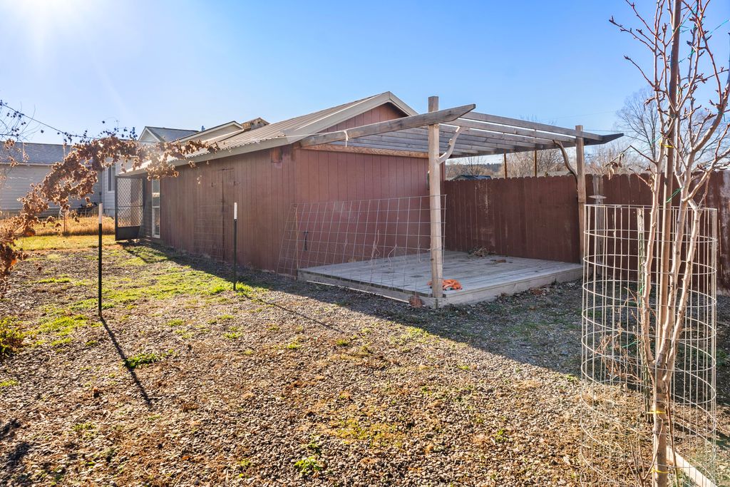 The property includes a detached shop plus an additional outbuilding, ideal for storage, hobbies, or workspace. Plenty of room for RV parking, trailers, and toys with easy access and generous lot dimensions. Mature trees provide privacy and character, while the fenced yard adds usability and security.