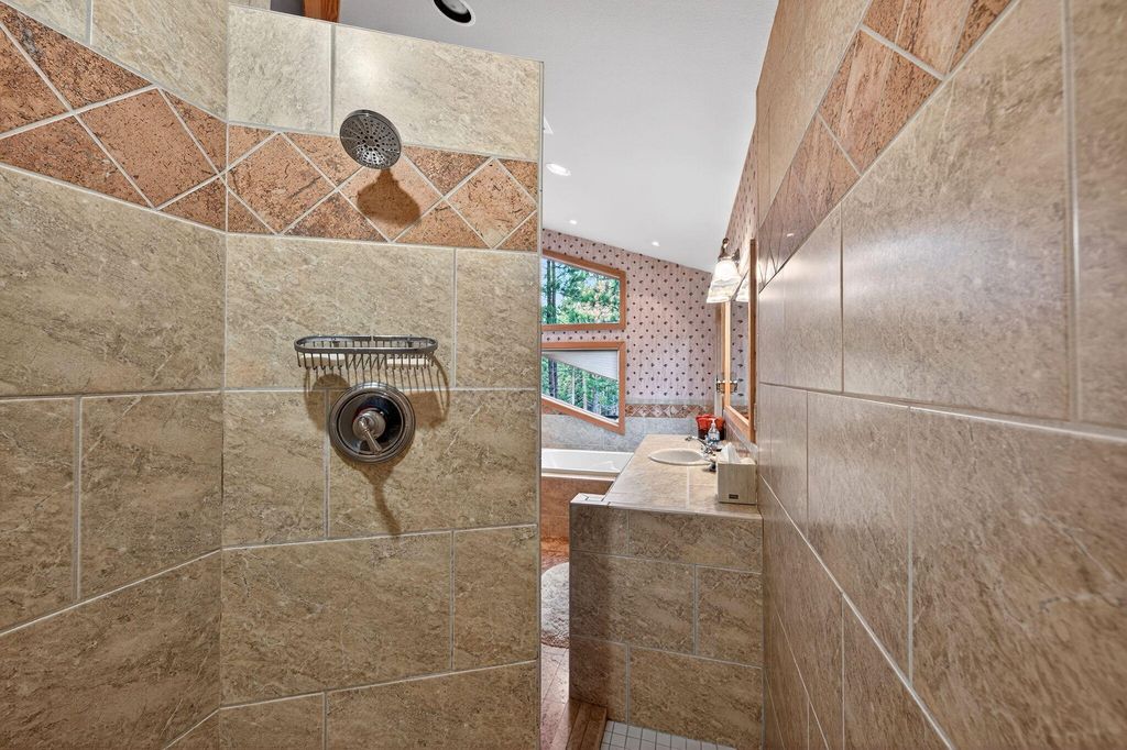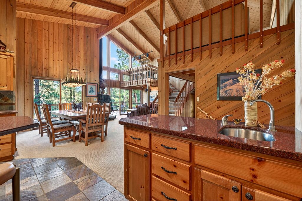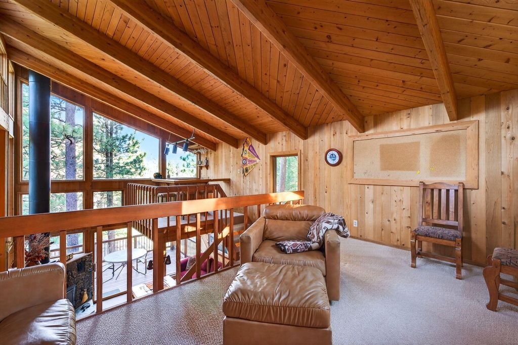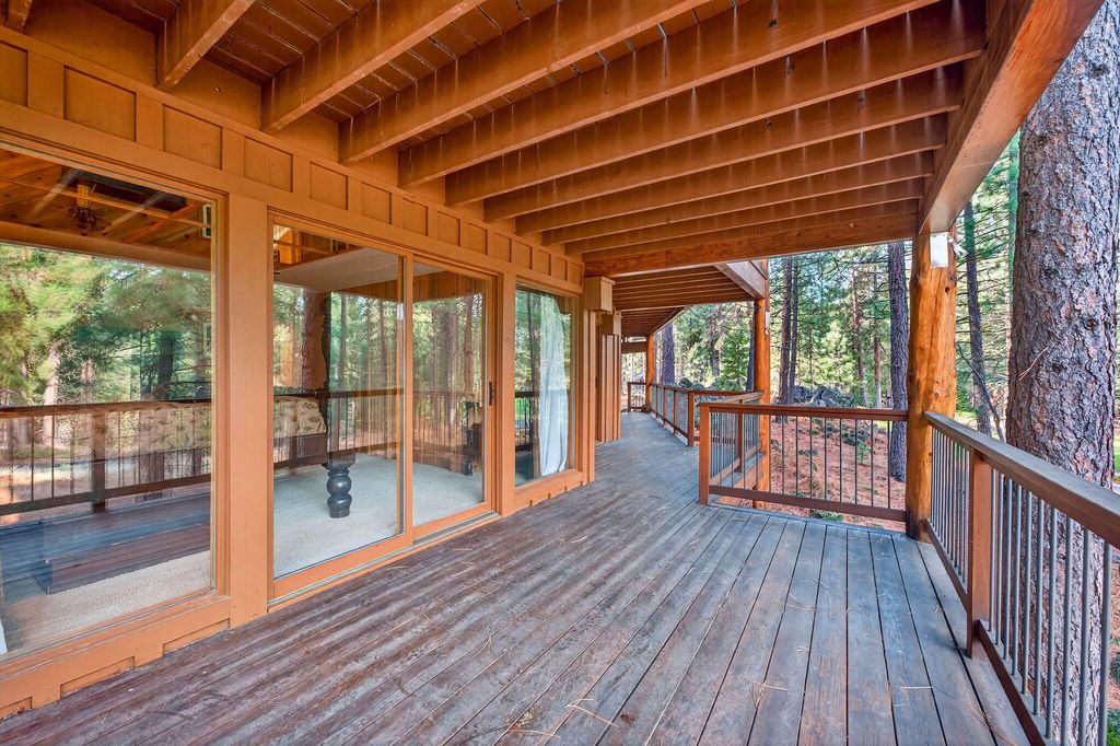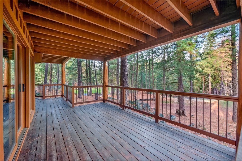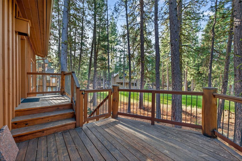 Located on the Big Meadow Golf Course at Black Butte Ranch, this fully furnished, 3,602 sq. ft. home offers elevated views of the 13th green and 14th tee. Multiple tiered decks provide excellent indoor/outdoor living and entertaining opportunities. After a day of golf or skiing, relax by one of two fireplaces or enjoy the jetted tub in the primary bath. The upper-level main living area features a spacious kitchen with island, wet bar, breakfast nook, dining area, family room, plus additional loft spaces with a bar and flexible-use areas. The main level includes 5 bedrooms and 4 bathrooms, each with access to its own private deck. A 2-car garage with basement provides ample storage for outdoor and winter equipment. This is your chance to live and play at the ranch with access to golf courses, dining, pools, spa, fitness center, sports courts, walking and biking paths, recreation center, and year-round activities.