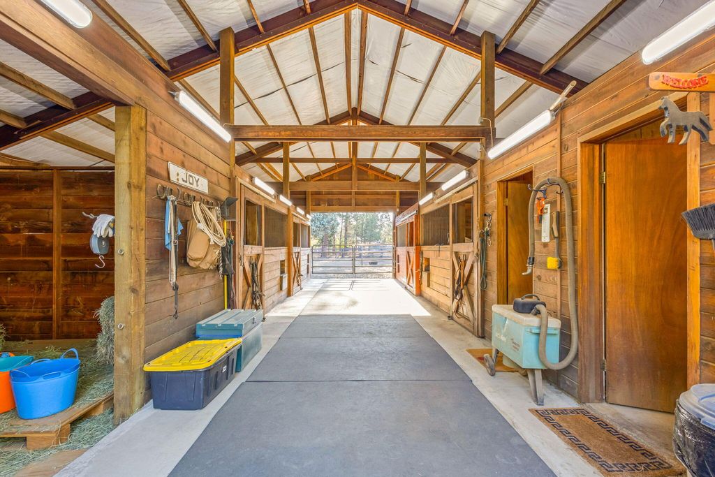 Turnkey Equestrian set up on very private acreage with direct access to USFS land and trails that is also very close to town. This horse property is perfect for equine enthusiasts: 4 stall barn with cement aisle, individual paddocks for each stall, metal roof, tack room, hay storage, feed room, good lighting, and easy access to the home and property, extensive fencing (entire property) and gates. Also includes a well laid out, and structurally sound home with high vaulted tongue and groove ceilings; a primary suite with vaulted ceilings on the main level; New HVAC with zoned mini split system and new propane woodstove. Property additionally features: Large paver patio/gazebo in backyard with complete privacy visually; Hot tub on rear patio; 3 bay shop with metal siding, metal roof, concrete floor; Greenhouse with hydraulic lifting windows; Garden/landscape shed that would make an ideal chicken coop; Extensive front and back landscape; Freshly painted/matching structures on property.