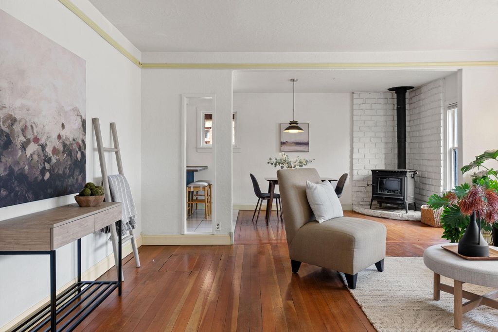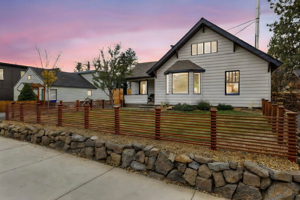 Situated on a lot in the sweet spot between downtown Bend and the Old Mill, this charming four-bedroom home offers the ultimate Central Oregon lifestyle. Just blocks from Miller's Landing and Drake Park, you can leave the car behind and walk to the river, restaurants, shops, and trails. Inside, the home radiates warmth with beautiful fir floors and an updated kitchen and bathroom. The functional layout is packed with ample built-in storage, while the second story offers delightful peek-a-boo mountain views. Enjoy your morning coffee on the covered front porch or relax in the private, fully-fenced backyard featuring a paver patio and lawn. This property is also in the coveted Priority Enrollment Zone for Amity Creek Magnet School. Ideally situated in the heart of town, this home is your front-row seat to everything that makes Bend amazing!